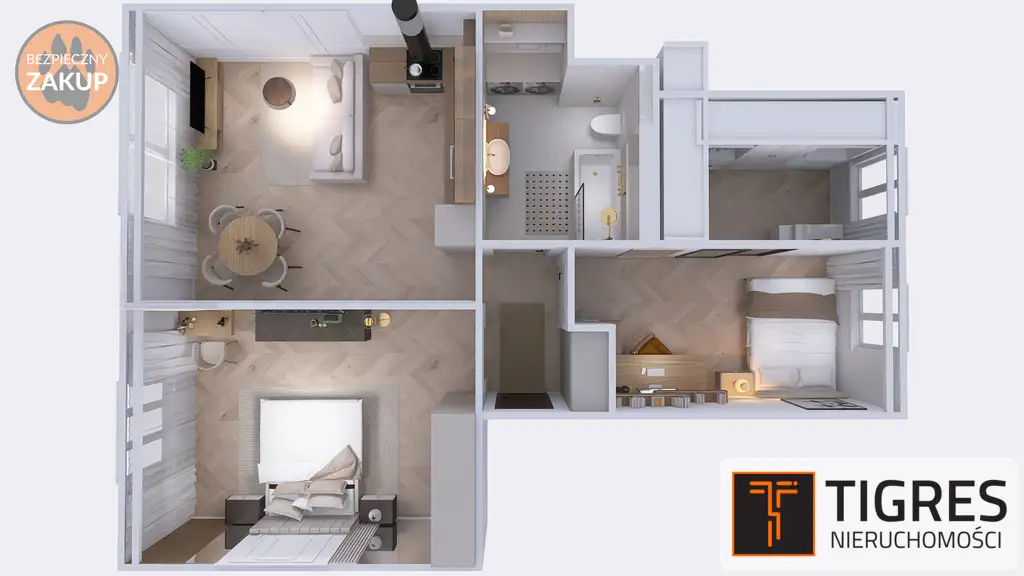 * Przemyślany układ pomieszczeń oraz duży metraż pozwalający na wydzielenie trzeciego pokoju,