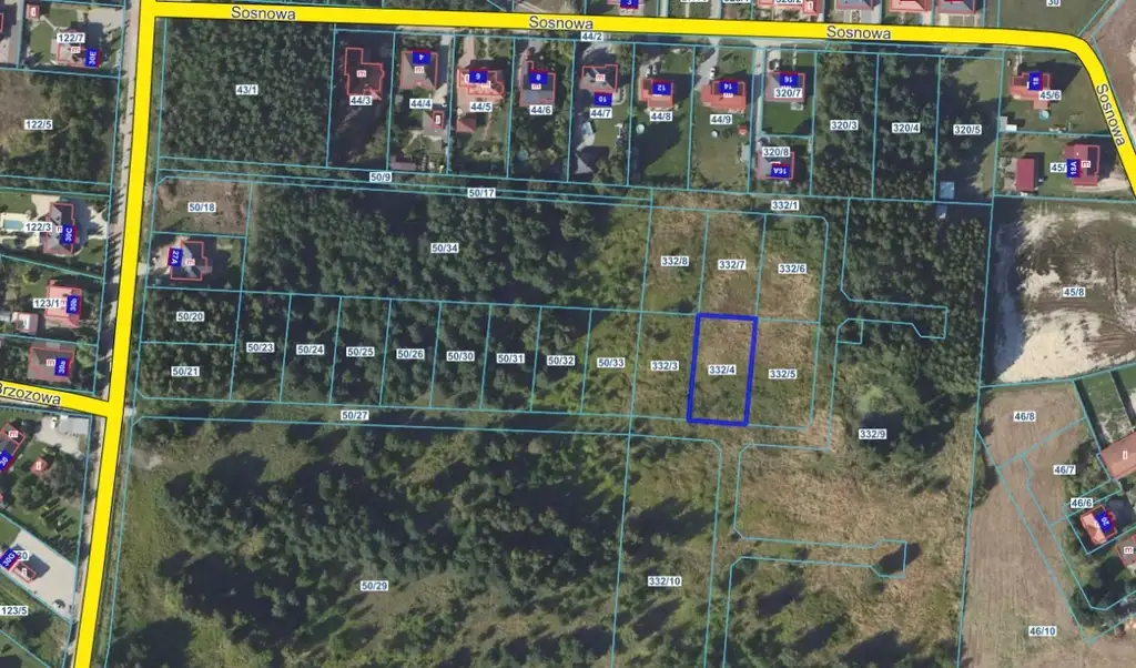 Działka 332/4 położona w miejscowości Wioska, w odległości 2,5 km od centrum Sycowa.