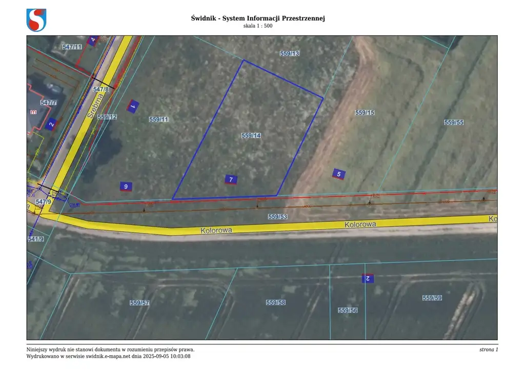 na sprzedaż nieruchomości niezabudowanej oznaczonej jako działka nr 559/14 o pow. 952 m², położona w Świdniku przy ul. Kolorowej 7, obręb 0006 – Kolonia Krępiec, dla której prowadzona jest księga wieczysta nr LU1I/00120265/0.