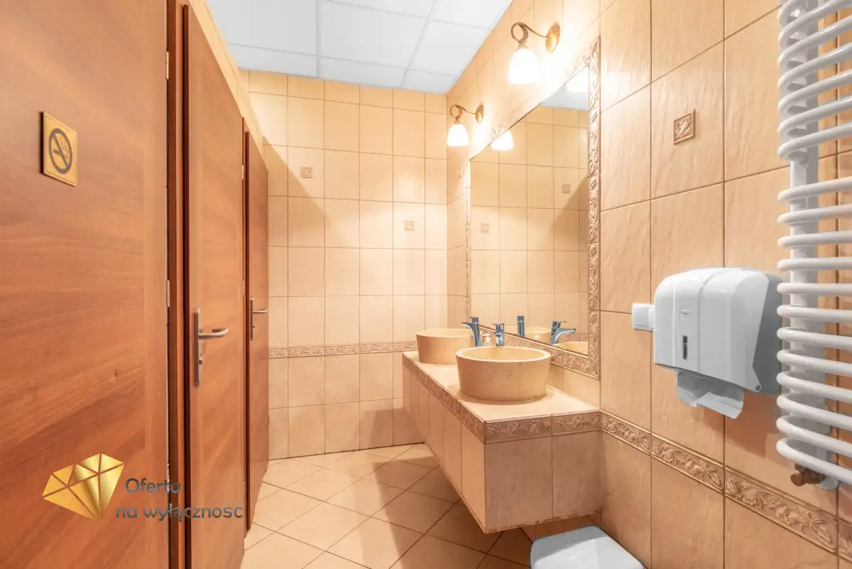 - 3 łazienki ogólnodostępne (damska, męska i dla niepełnosprawnych)
