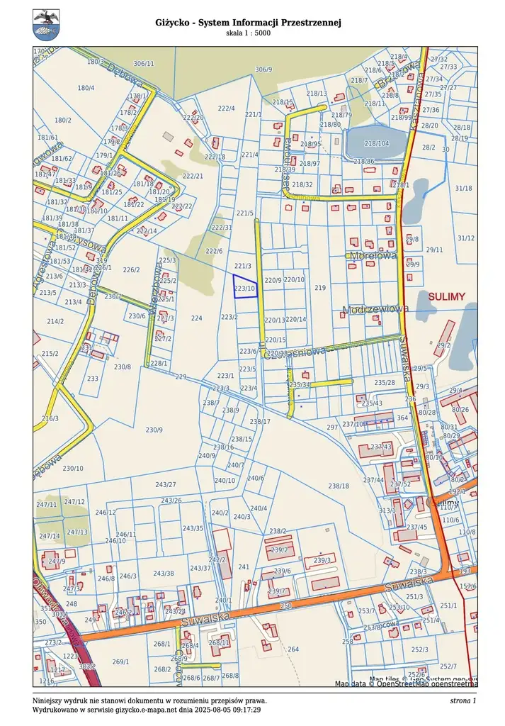 1) 223/10 o powierzchni 0,1727 ha, położona w miejscowości Gajewo, obręb geodezyjny Gajewo, gmina Giżycko dla której Sąd Rejonowy w Giżycku prowadzi księgę wieczystą OL1G/00016906/1. Wg ewidencji Gruntów i Budynków Starostwa Powiatowego w Giżycku działka oznaczona jest symbolem: RIVa – grunty orne.