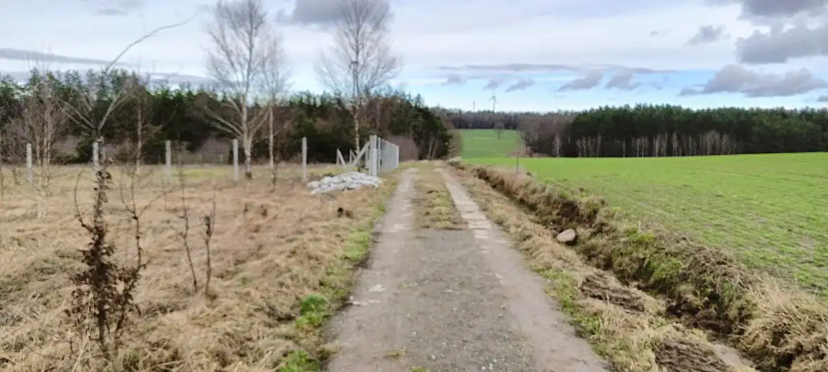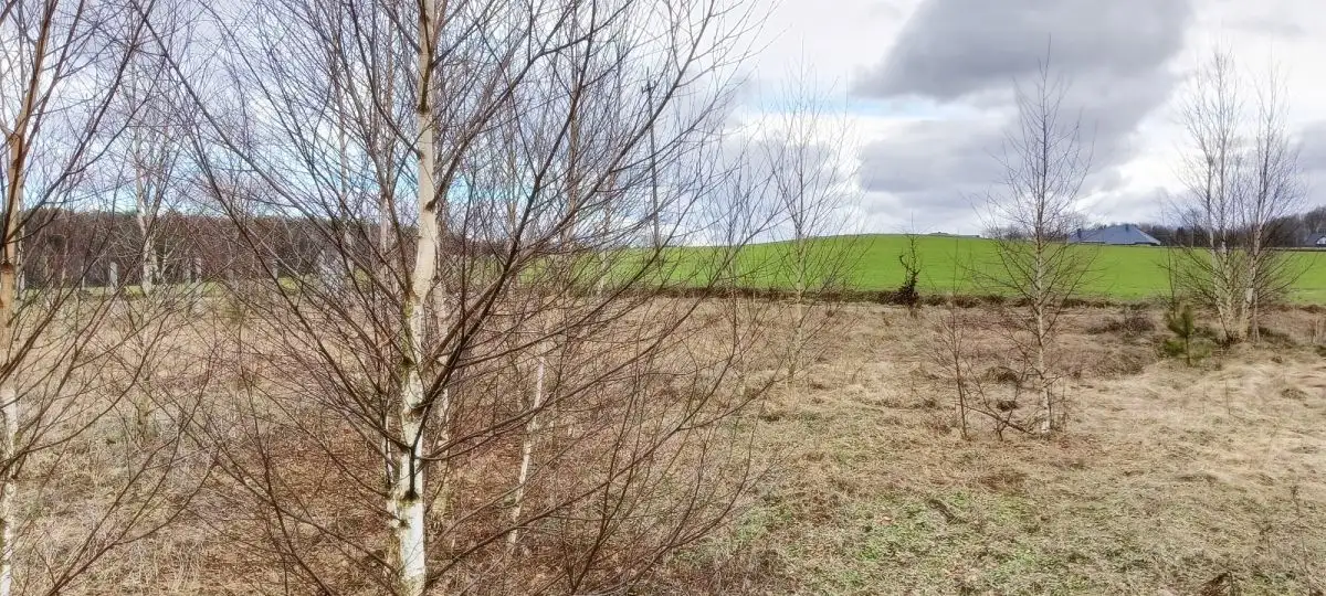 Działka płaska, w kształcie prostokąta, lekko porośnięta nasadzeniami i samosiejkami, ładnymi widokami.