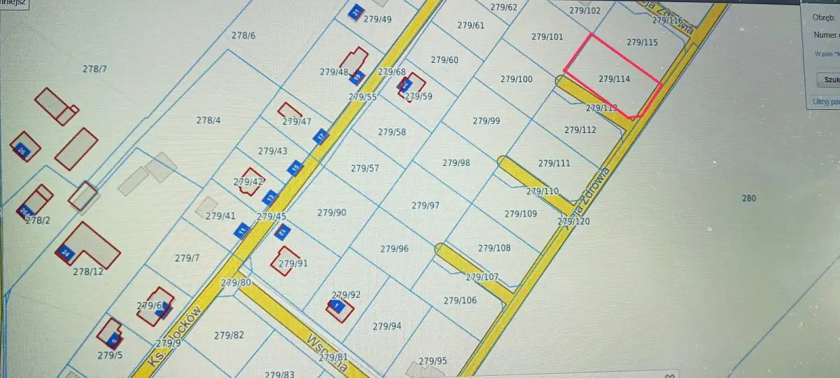 Działka budowlana o numerze ewidencyjnym 279/114, położona w miejscowości Strzepcz, w powiecie Wejherowskim, w gminie Linia, przy ulicy Al. Zdrowia o powierzchni 1442 m², położona ok. 400 m² od Jeziora Strzepcz, na nowo powstającym osiedlu domów jednorodzinnych.