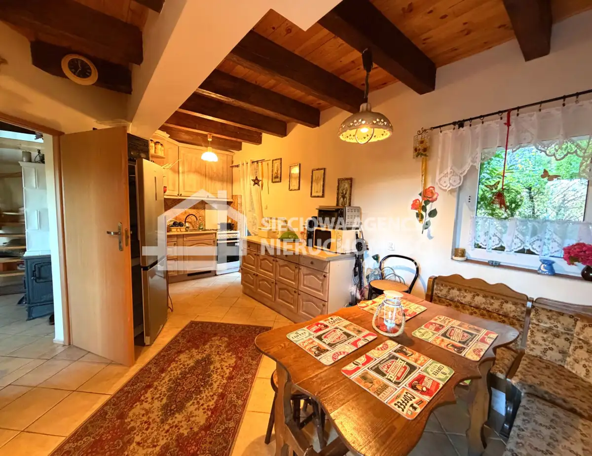 Gościniec Malinówka ( 100 m), przystanek kolejowy ( 200 m) i wyciąg narciarski Koszałkowo ( 800 m)Domek charakteryzuje się funkcjonalnym podziałem, na parterze jest przestronna kuchnia, idealna do przygotowywania posiłków dla całej rodziny, z kuchni i salonu jest wyjście na duży taras z pięknym widokiem na okolicę, w salonie stoi piec kaflowy, dodatkowo na parterze jest oddzielny pokój.