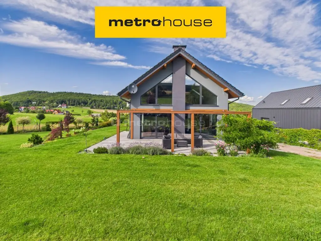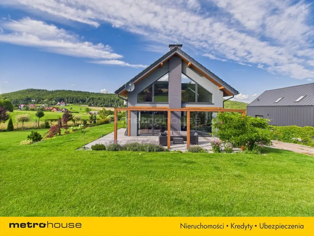 Nowoczesny dom o powierzchni 250 m², na działce 17 arów z ogrodem z licznymi nasadzeniami roślin w tym przepiękną glicynią, położony we wsi Zasań, gmina Myślenice, położona 50 minut jazdy autem od