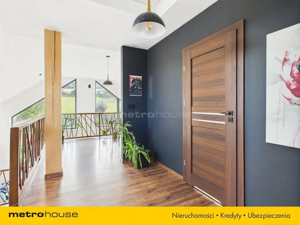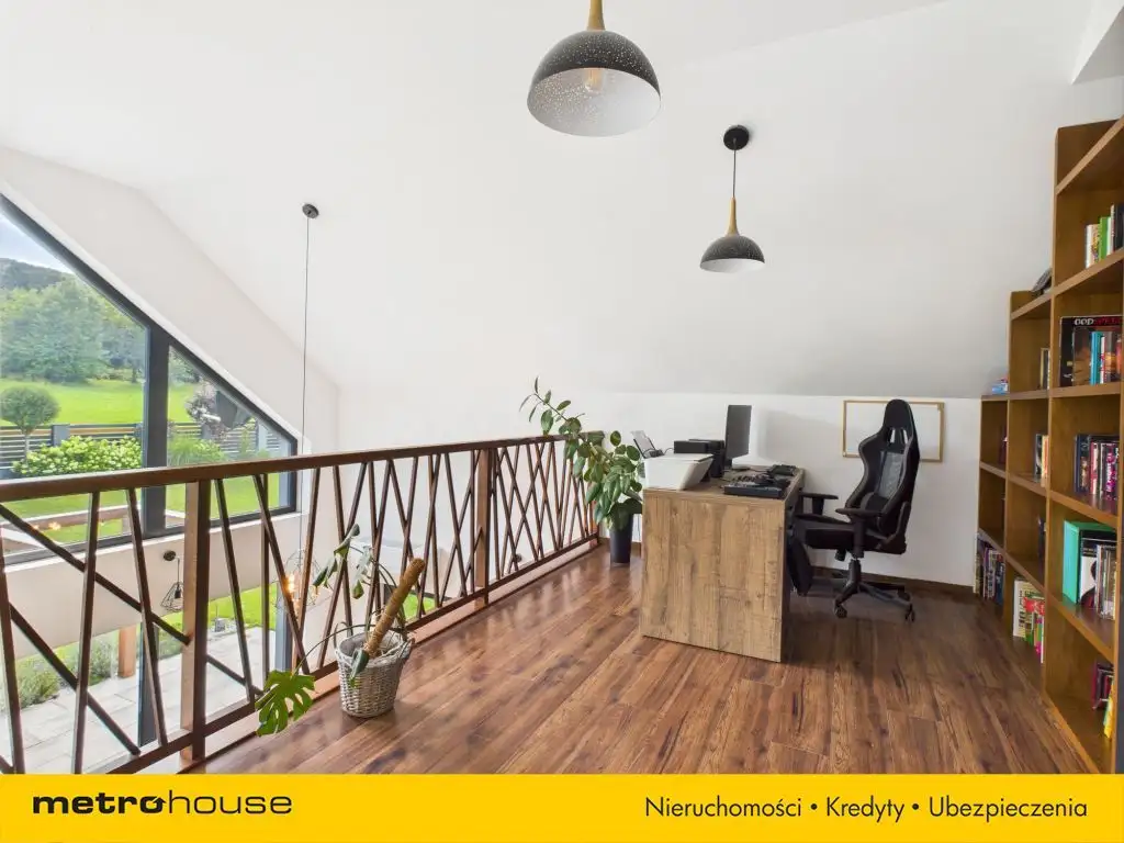 Dom jest idealnym miejscem dla tych, którzy cenią sobie spokój oraz bliskość natury, jednocześnie nie rezygnując z nowoczesnych technologii. Nieruchomość składa się z otwartej przestrzeni życiowej salon połączony z otwartą kuchnią (meble czarny mat no finger i AGD) i jadalnią, trzech łazienek ( na parterze 2 łazienki z kabiną prysznicową), co gwarantuje komfort i funkcjonalność nawet dla liczniejszej rodziny. W domu jest osobna część domu wydzielona dla seniora domu i składa się z salonu z łazienką i sypialni. Na Piętrze jest antresola z ogromnym otwartym pokojem z częścią biurowo-czytelniczą, łązienka z wanną, sypialnia, garderoba i sypialnia obydwa pokoje mają wyjście na taras o powierzchni 40 m². ( bez balustrad, do zrobienia dla nowego włąściciela). Dużym atutem są również 3 miejsca postojowe, co jest szczególnie ważne dla rodzin posiadających więcej niż jeden samochód.