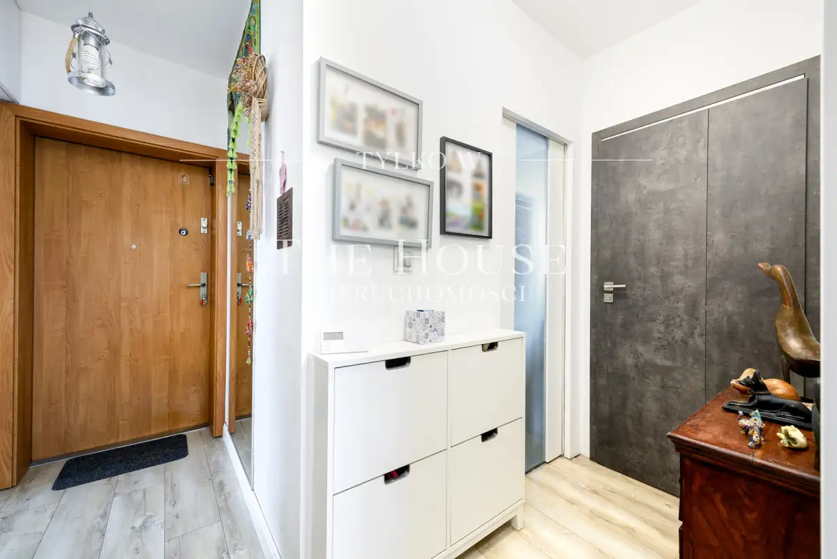 Do mieszkania przynależy również piwnica (ok. 9,5 m²) - obecnie pełniąca funkcję pralni, co pozwoliło na maksymalne wykorzystanie przestrzeni mieszkalnej.