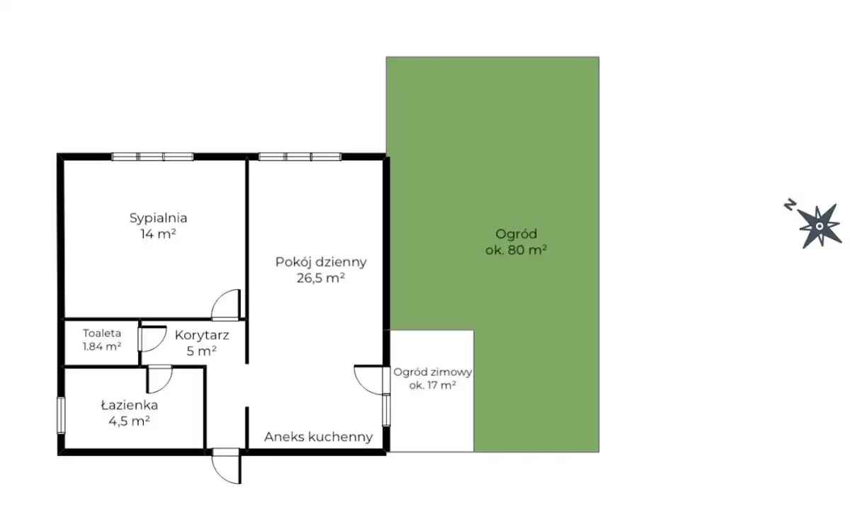 ♦ Toaleta (1,84 m²) - oddzielna, wygodna dla domowników i gości.