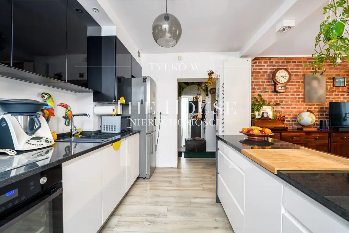 Odsłonięta cegła z lat 20. nadaje wnętrzu autentyczności, a ogród zimowy i prywatna zieleń - komfortu, który w centrum miasta jest niemal niespotykany.