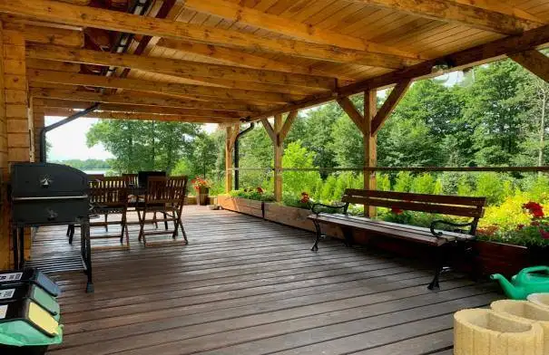• zadaszony sezonowy taras o powierzchni 10m²,