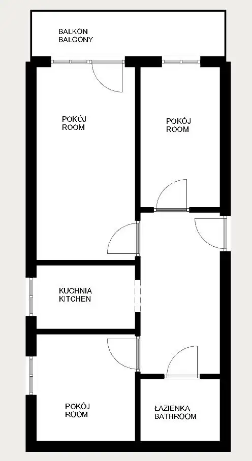 Pokoje: trzy oddzielne pokoje, kuchnia, łazienka, zabudowany balkon typu loggia