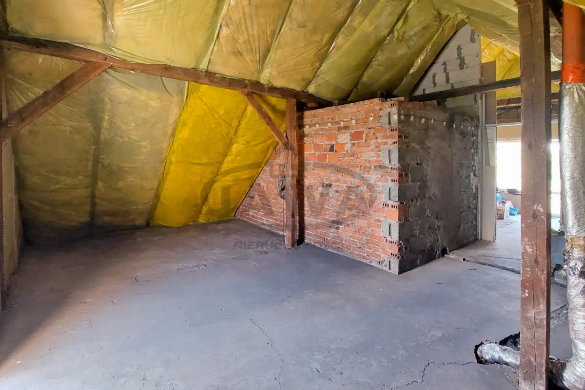 Piętro (ok. 80m²): otwarta przestrzeń do własnej aranżacji, z doprowadzonymi instalacjami pod łazienkę - idealna baza na nowoczesną strefę prywatną lub dodatkowe sypialnie