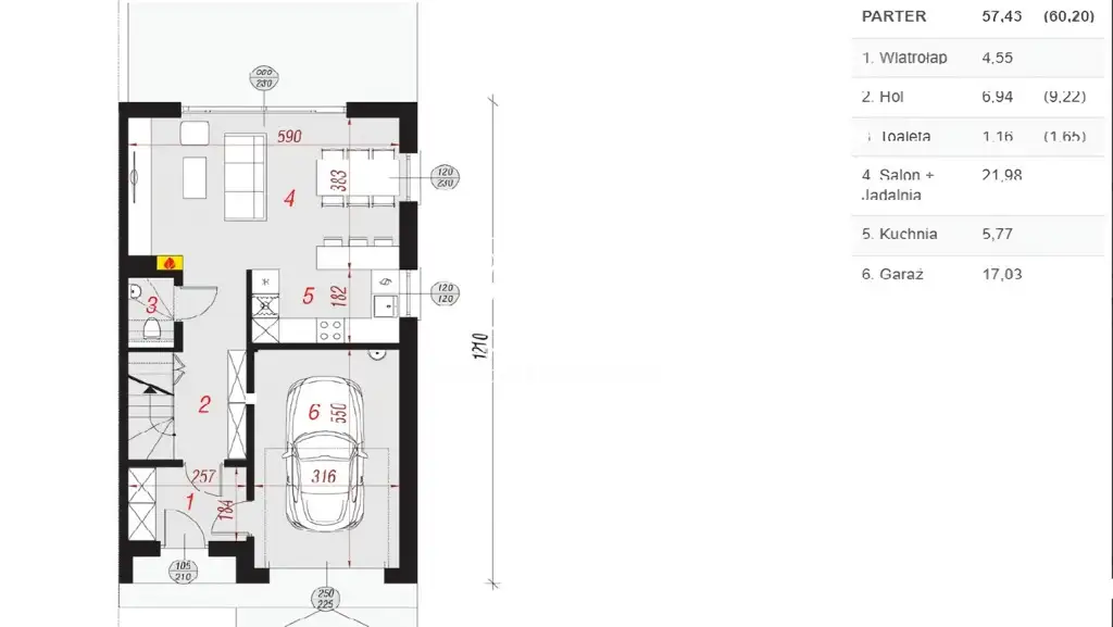 - Garaż jednostanowiskowy o powierzchni ok. 17 m²