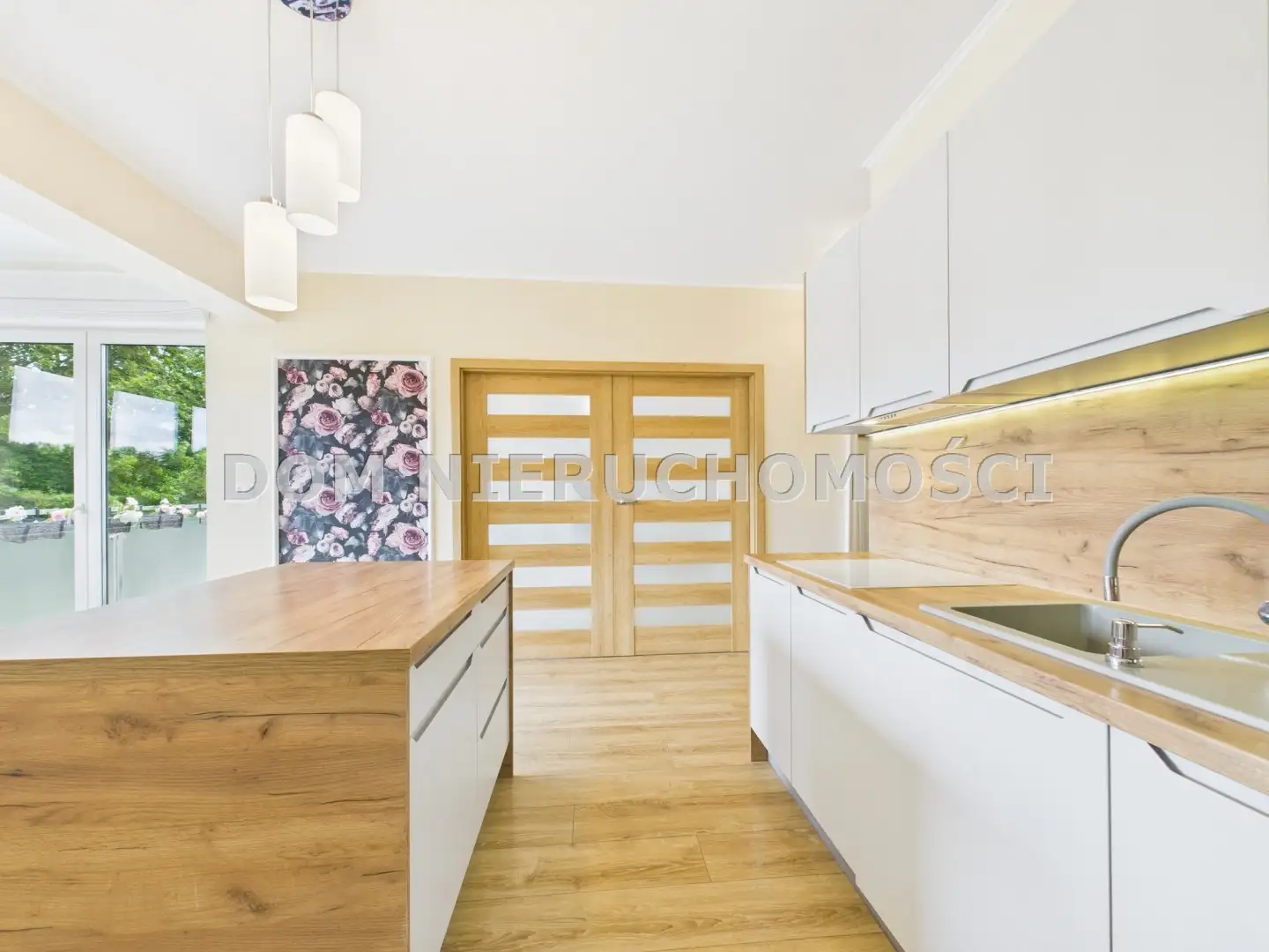Piękna nowoczesna kuchnia jest sercem tego "domu"! Zabudowa jest stylowa i ponadczasowa! Znajdują się w niej wszystkie niezbędne sprzęty AGD, oprócz lodówki. Między kuchnią i jadalnią zamontowano wyspę z szafkami. Jest to zarówno blat roboczy jak i miejsce do przechowywania!