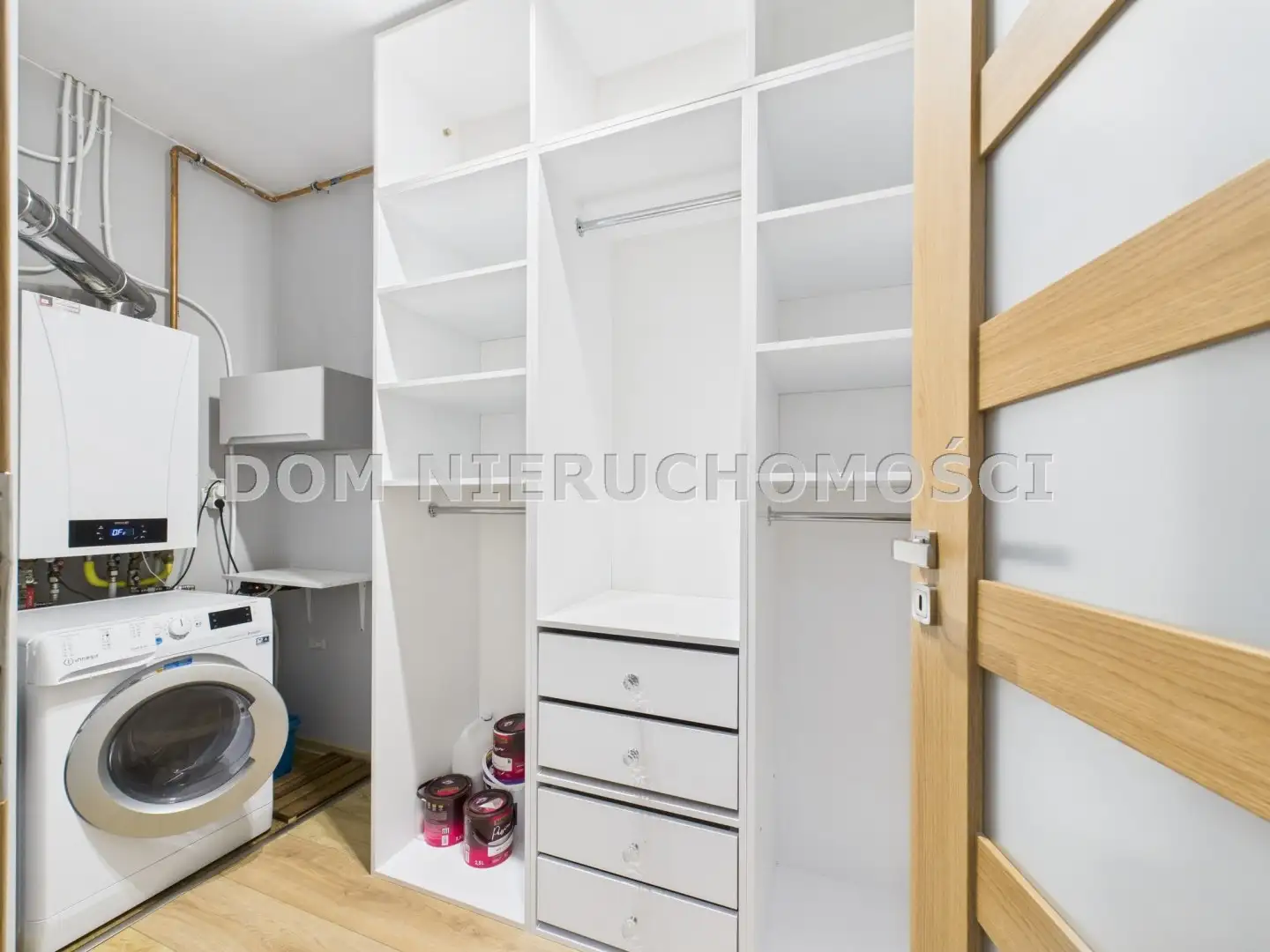 Dużym atutem tego mieszkania jest pomieszczenie gospodarcze. To tutaj znajduje się pralka oraz dwufunkcyjny piec gazowy. Ponadto umieszczono tam półki, które pomieszczą naprawdę sporo. Można tu schować cały niepotrzebny "bałagan", gdy odwiedzą nas goście.