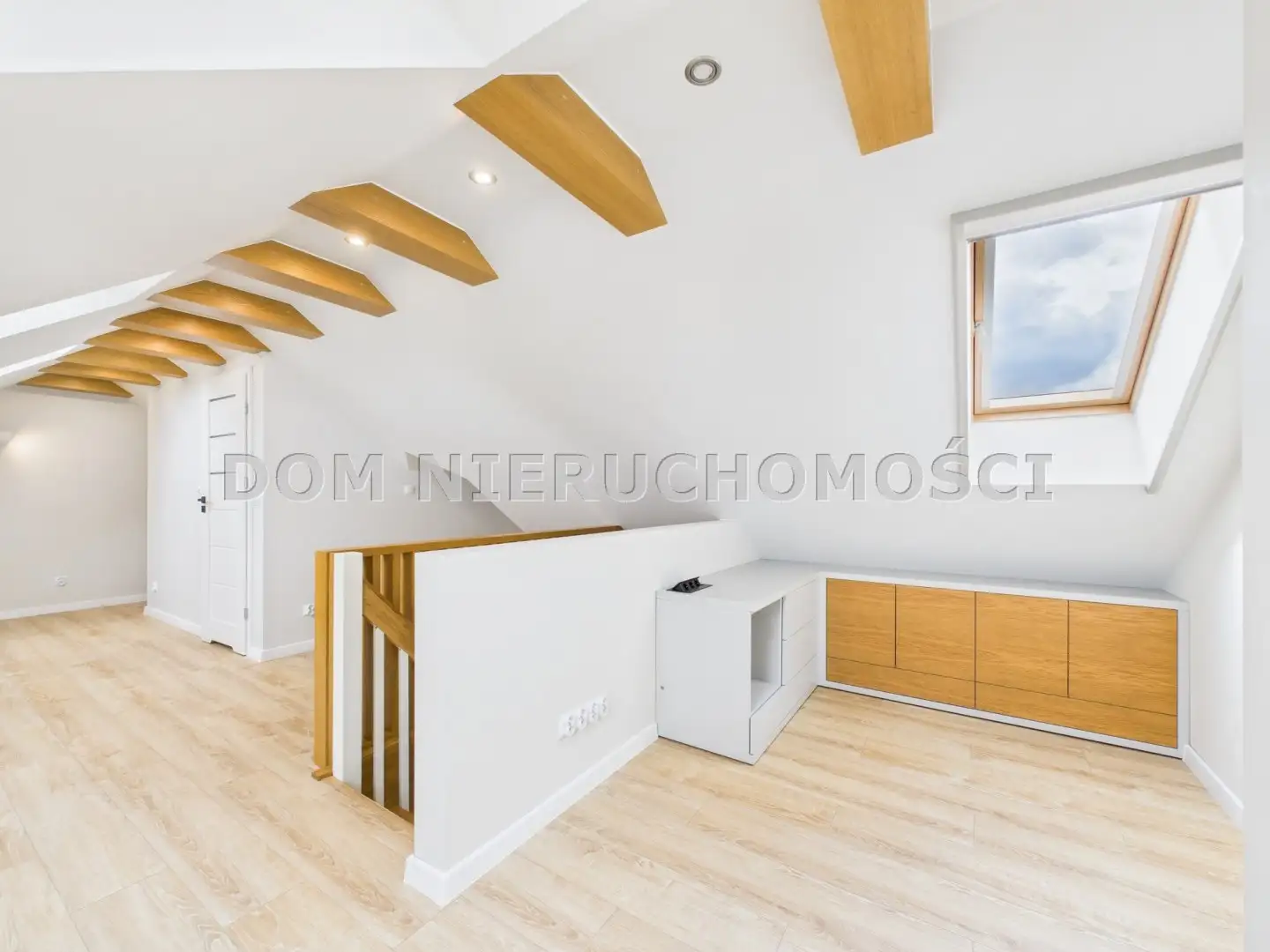 Na poddaszu znajduje się otwarta przestrzeń, ale bardzo dobrze zagospodarowana i wykorzystana! Jest miejsce zarówno do pracy i nauki, jak i pomieszczenie do zabawy dla dzieci. Na poddaszu znajduje się również wc. Dodatkowo można wyodrębnić niewielką sypialnię. Skosy zostały zabudowane szafkami, można tam pomieścić naprawdę sporo.