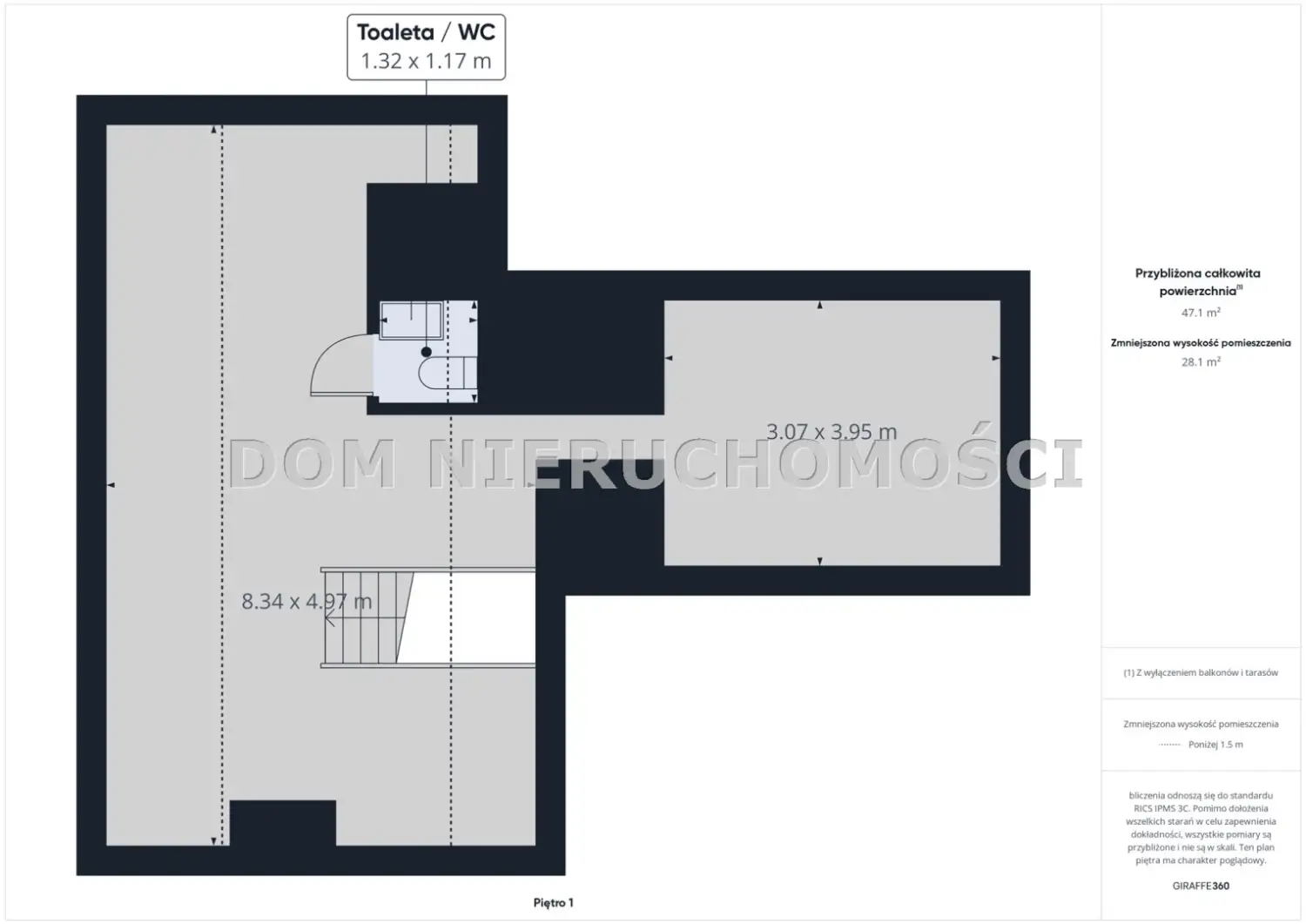 Powierzchnia mierzona po podłodze wynosi ponad 40 m².