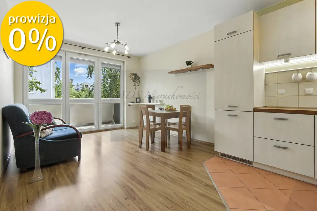 Mieszkanie usytuowane na wysokim parterze oferuje doskonałe doświetlenie dzięki oknom skierowanym na południowy wschód. Przestronny salon (10,3 m²) płynnie łączy się z funkcjonalnym aneksem kuchennym, tworząc otwartą strefę dzienną idealną do relaksu i spotkań. Przytulna sypialnia (10,3 m²) zapewnia spokojny wypoczynek, a wygodny przedpokój (4,5 m²) z zabudową meblową oferuje miejsce do przechowywania.