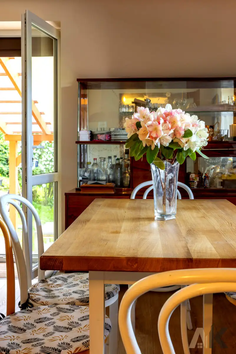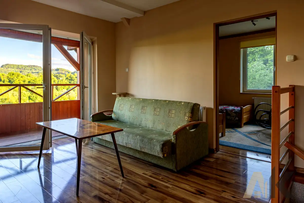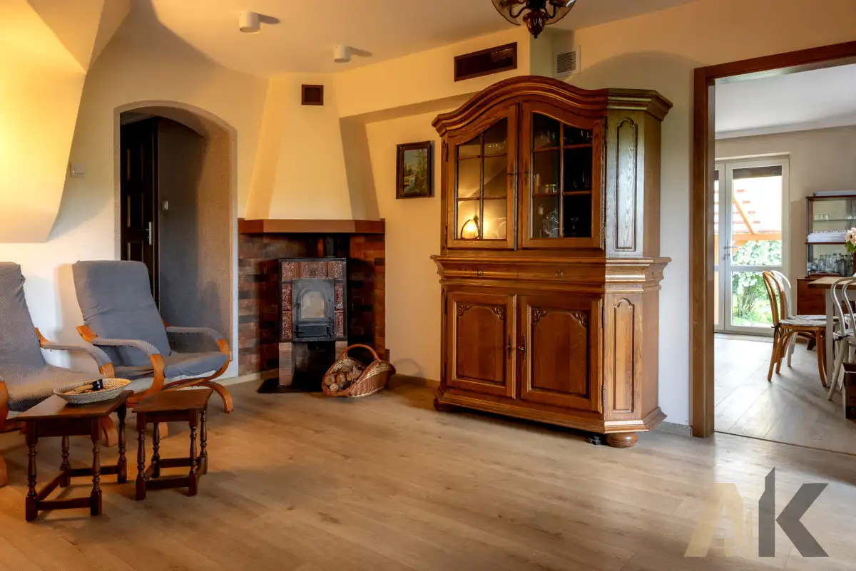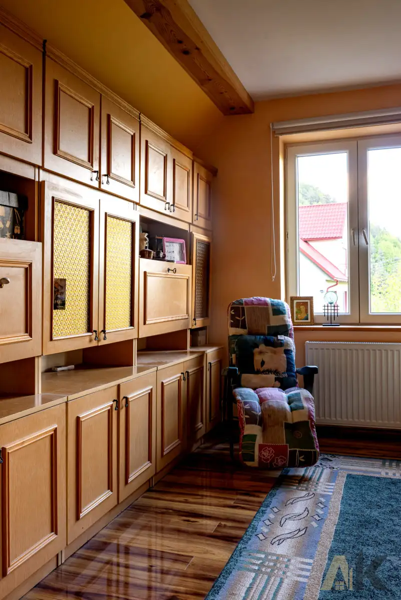 OPIS DOMU Na sprzedaż oferujemy zadbany dom jednorodzinny o powierzchni użytkowej 130 m², położony w malowniczej, zielonej okolicy. Budynek został wzniesiony w 1970 roku z pustaka, a w późniejszych latach przeszedł modernizacje, które dostosowały go do współczesnych standardów. Dach pokryty został trwałą, malowaną dachówką ceramiczno-betonową, co zapewnia wieloletnią ochronę przed warunkami atmosferycznymi. Dzięki nowoczesnym oknom PCV i drewnianym drzwiom wejściowym budynek cechuje się dobrą termoizolacją. Dodatkowym atutem są dwa balkony - klasyczny i w formie loggii - idealne do wypoczynku na świeżym powietrzu.