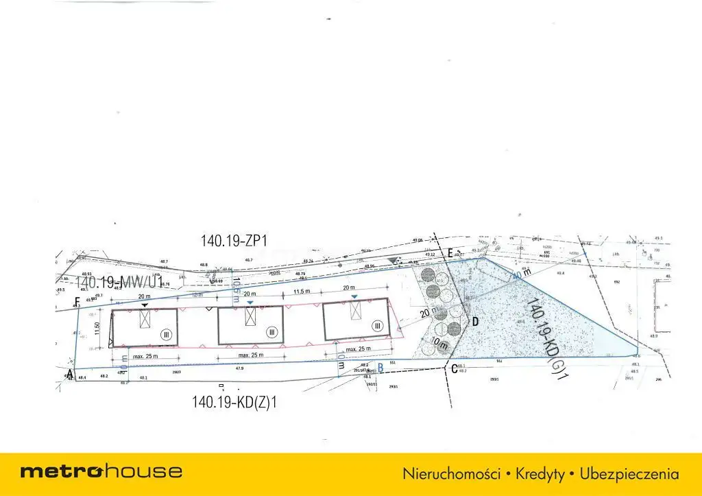 Stąd możliwość wybudowania trzech budynków mieszkalnych o maksymalnej długości 25m każdy. Przewidywany PUM ok.1800 m².