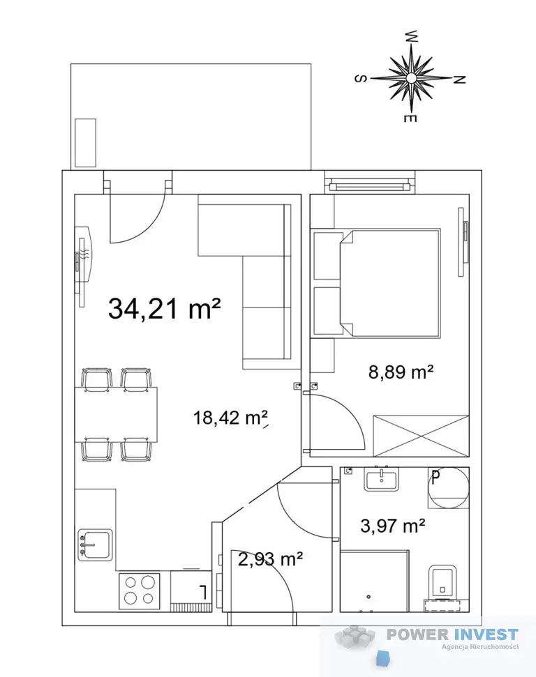Mieszkanie znajduje się na II piętrze. Lokal ma powierzchnię 34,21 m i składa się z:
