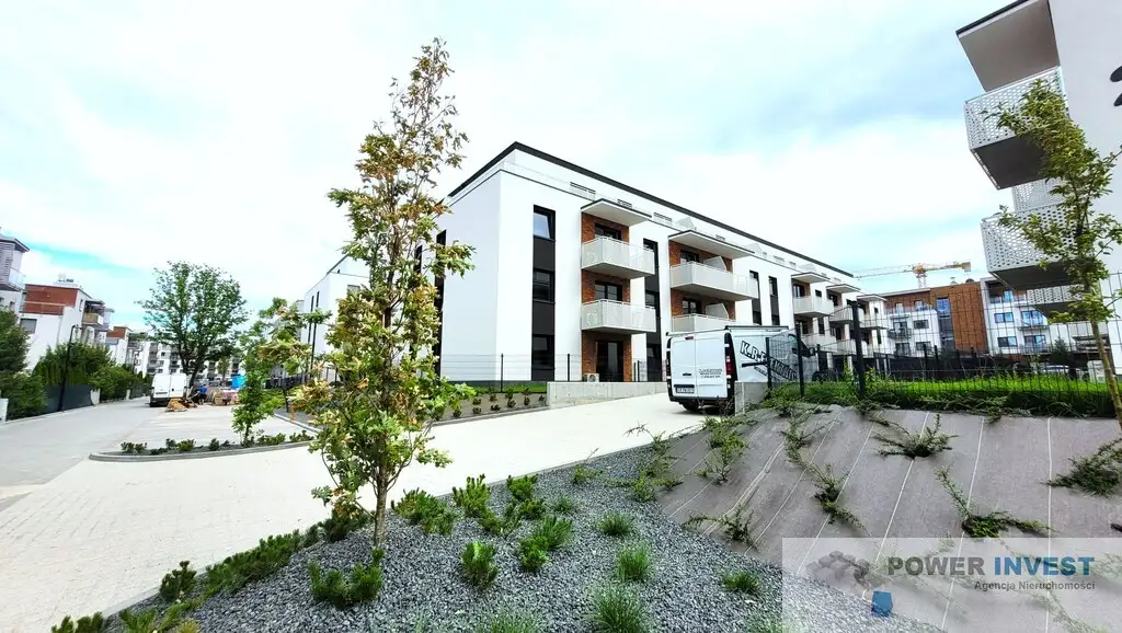 Budynki cechują się przemyślanym i spójnym projektem z zadbaną zielenią w częściach wspólnych.