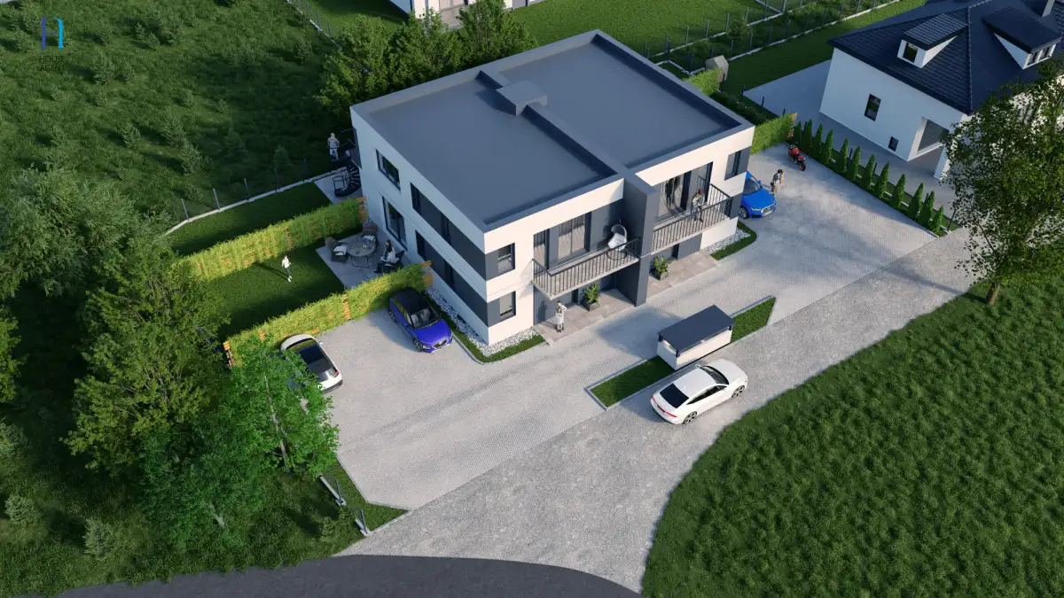 - budynek tworzy tylko 4 lokale (po 2 mieszkania na segment)