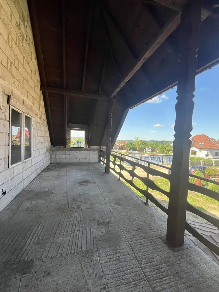 Sprzedam dom jednorodzinny w stanie surowym w Dynowie (woj. Podkarpackie), ul. Polna 10. Nr działki 1800/7. Dom budowany w 2000r, projekt Zameczek z Archetonu (+ nad garażem został zrobiony dodatkowy duży balkon/taras). Pod garażem i kotłownią podpiwniczenie, dodatkowo strych.
