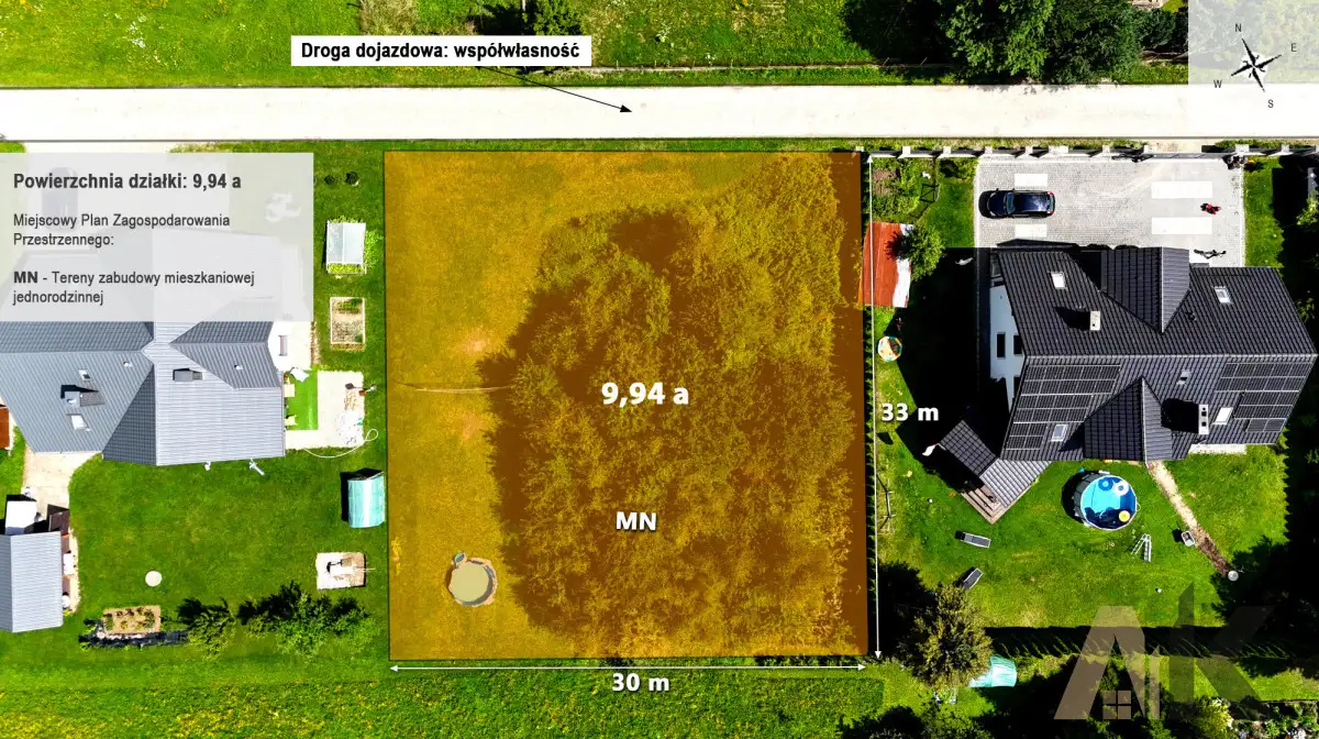 Media:*woda: TAK - w sąsiedztwie (możliwość podłączenia do wodociągu albo wykonania prywatnej studni)