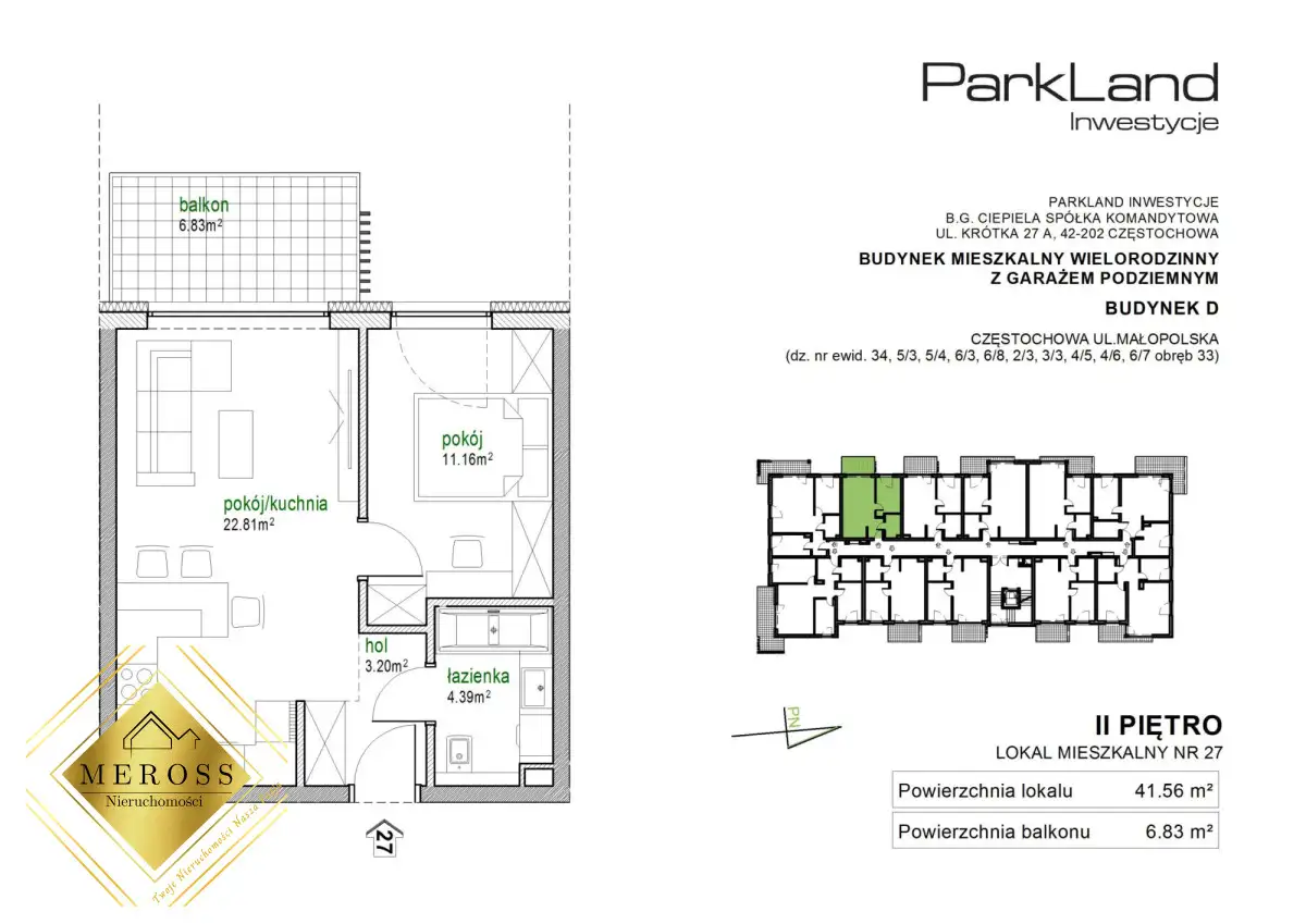 MEROSS Nieruchomości & ParkLand Inwestycjeprzedstawia do sprzedaży mieszkaniezlokalizowane w dzielnicy Parkitka w Częstochowiena osiedlu Park MałopolskaMieszkanie może być wyposażonew Inteligentny...