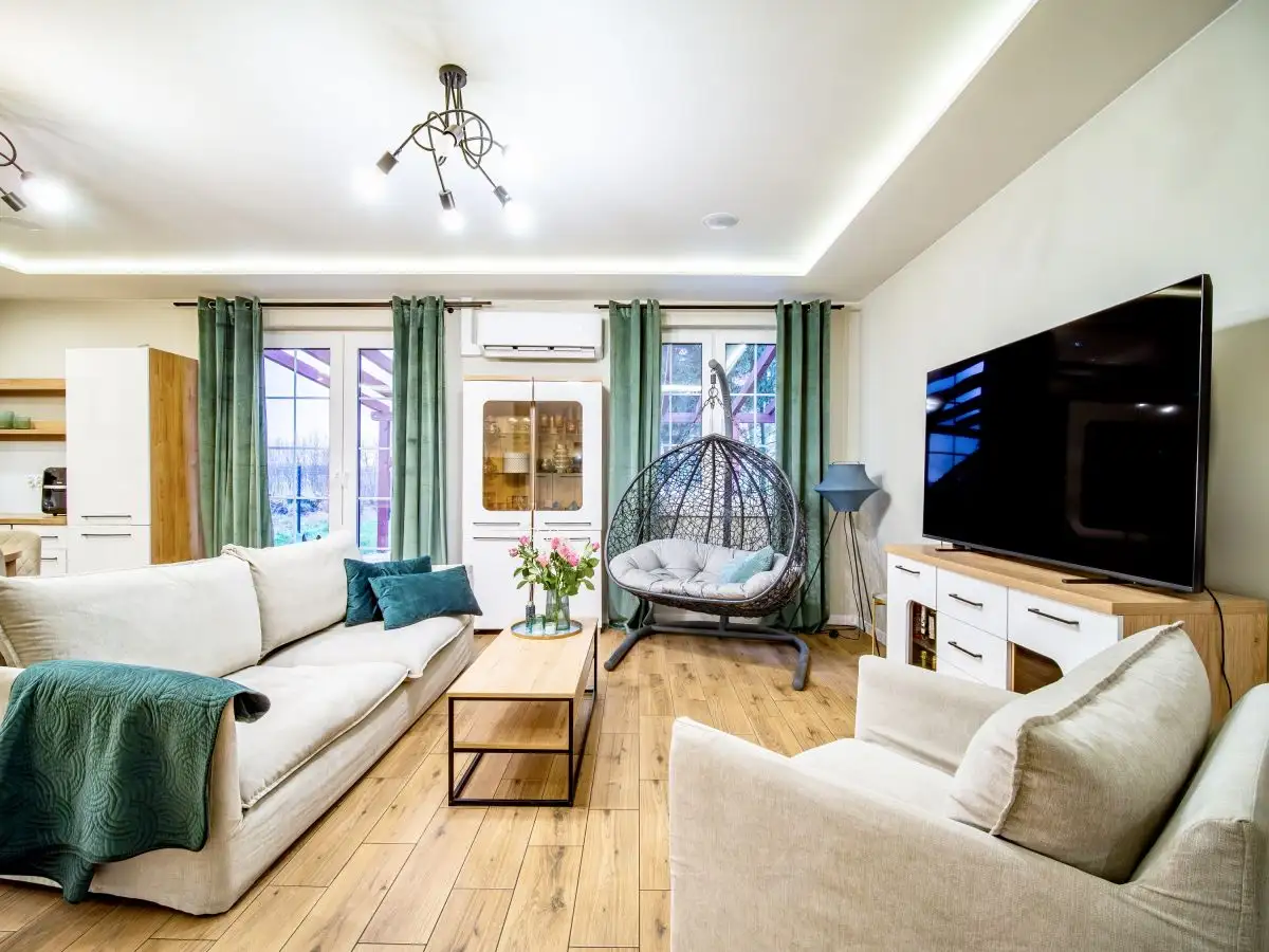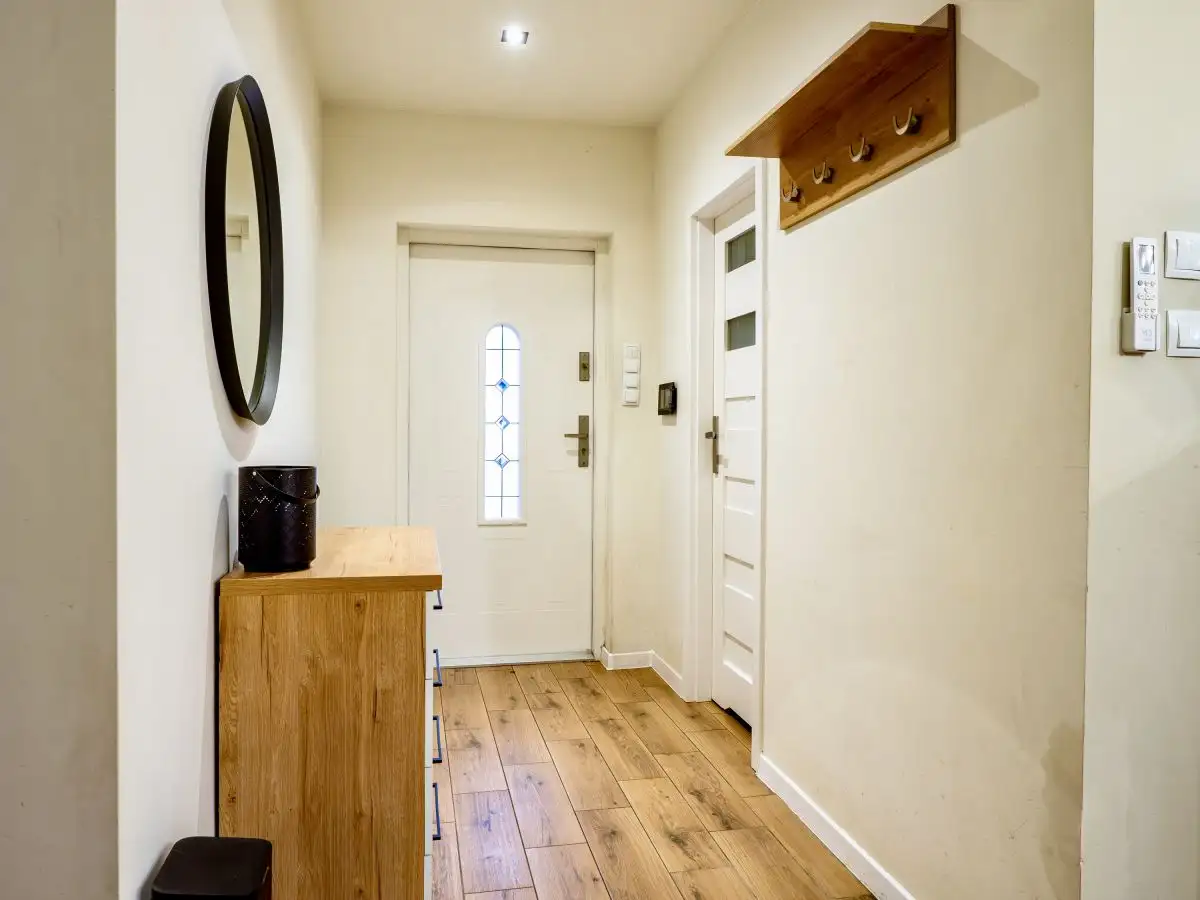 Kominek z płaszczem wodnym skutecznie ogrzewa cały parter, a inteligentne sterowanie bramą i klimatyzacją z pompą ciepła za pomocą aplikacji ułatwia codzienne użytkowanie. Dodatkowo nieruchomość wyposażona jest w system monitoringu obejmujący cztery kamery oraz wideofon. Dzięki tym rozwiązaniom dom jest niemal bezkosztowy w utrzymaniu - minimalizuje wydatki na energię, a ogrzewanie dzięki fotowoltaice praktycznie nie generuje kosztów.