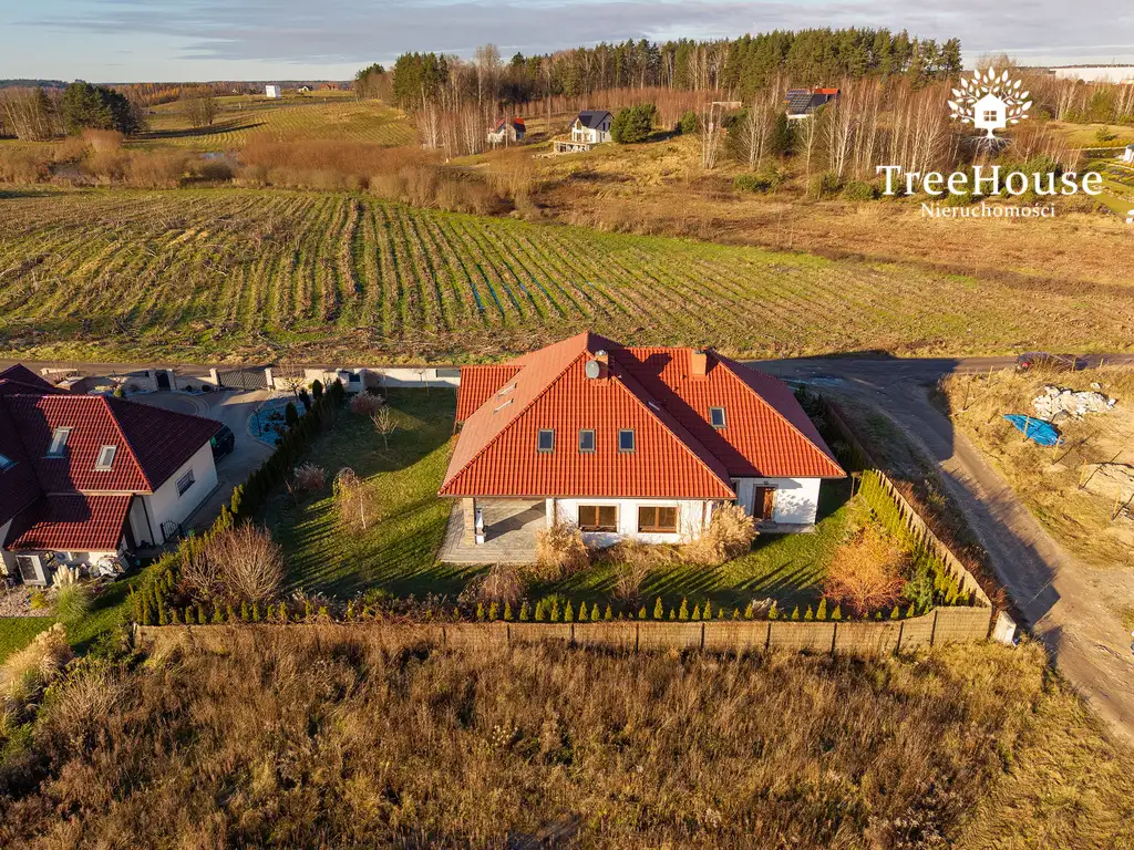 Dom o powierzchni całkowitej zgodnie z projektem ok. 231,2 m², użytkowej ok. 192,5 m², jednakże pomiar własny wskazuje, ze pow. użytkowa parteru to ok. 192,5m², natomiast poddasza ok.130 m². Dom został oddany do użytkowania w 2020 roku z pustaków ceramicznych o gr. 25cm i ocieplony styropianem o gr. 15cm. Dach pokryto dachówką ceramiczną. Okna PCV, dwuszybowe. Drzwi wejściowe przeciwwłamaniowe. Na podłogach znajdują się panele oraz gres.