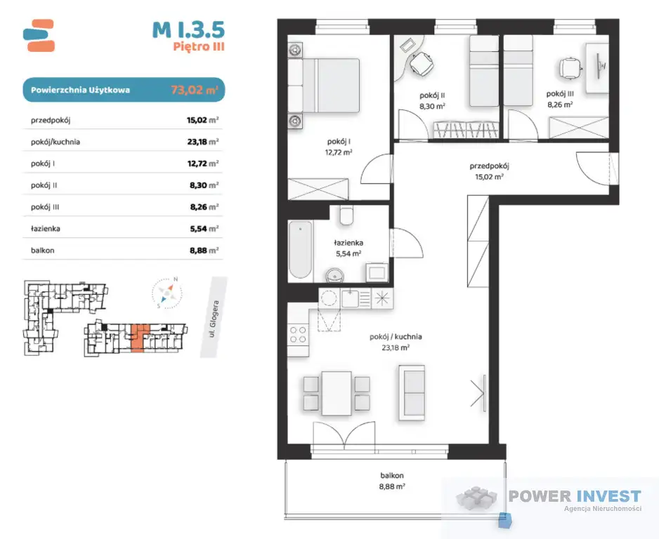 Powierzchnia użytkowa: 73,02 m²