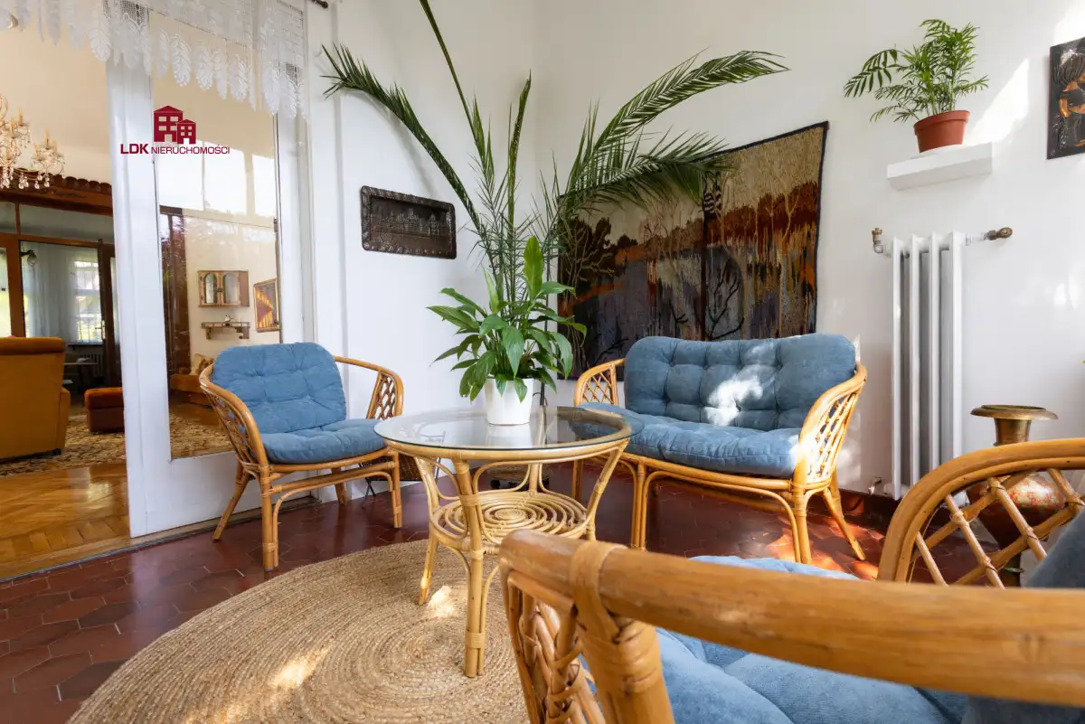 • Reprezentacyjny salon z wyjściem do ogrodu oraz przejściem przez oryginalne, dwuskrzydłowe drzwi do gabinetu - idealnego także jako eleganckie biuro,