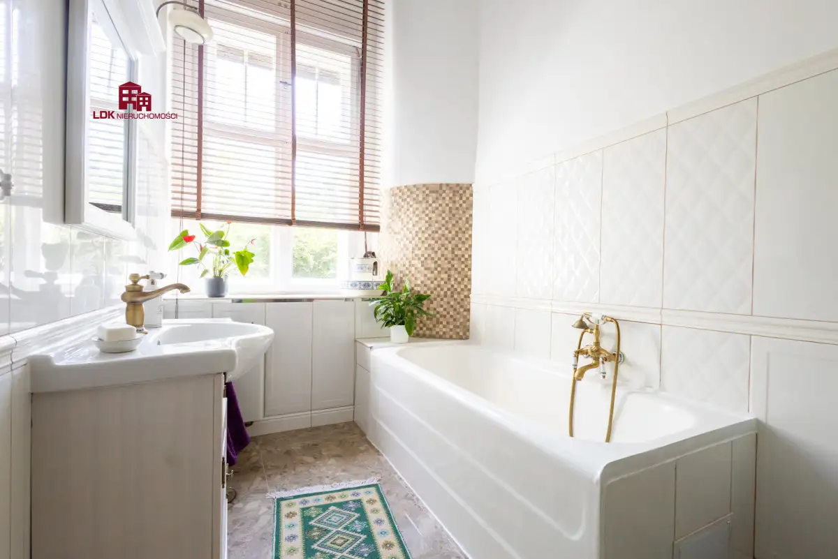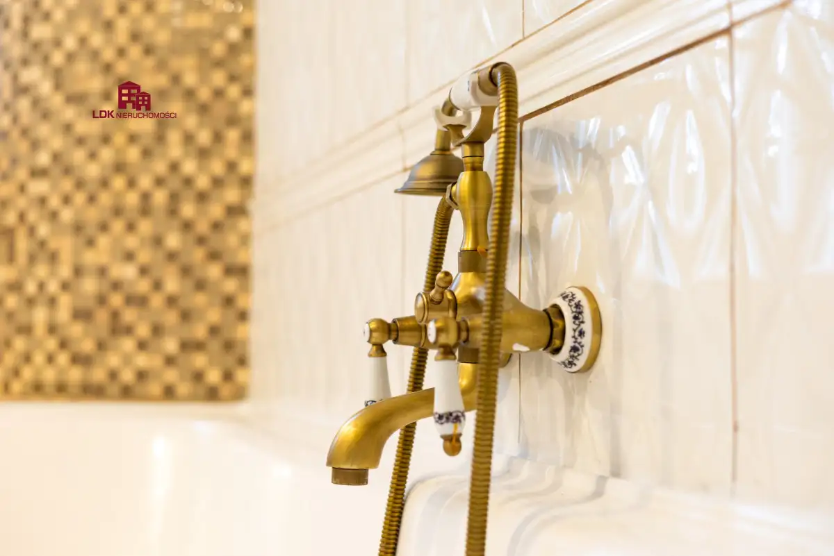 Zachowano oryginalną stolarkę drzwiową i okienną, drewniane ornamenty, parkiety, stylowe żaluzje i ozdobne płytki z epoki.