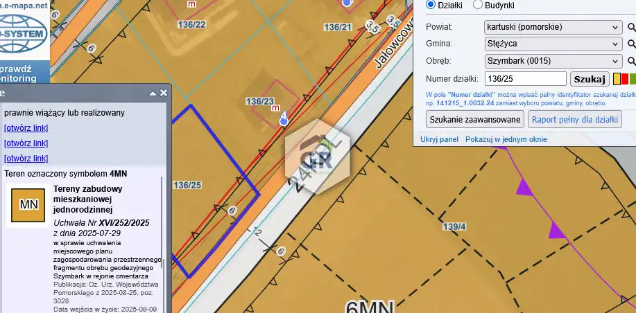 136/25 obręb 0015 Szymbark, Gmina Stężyca