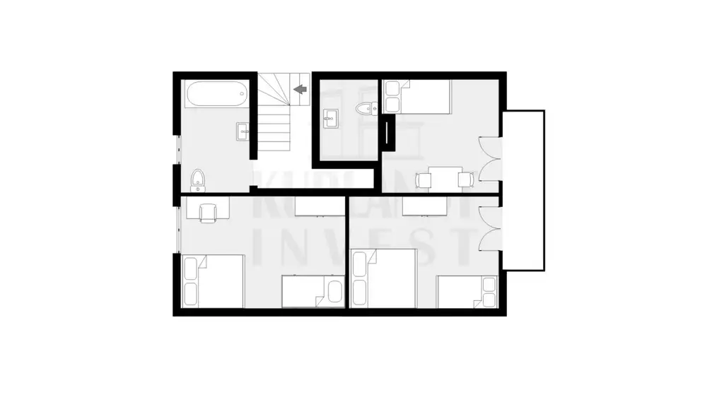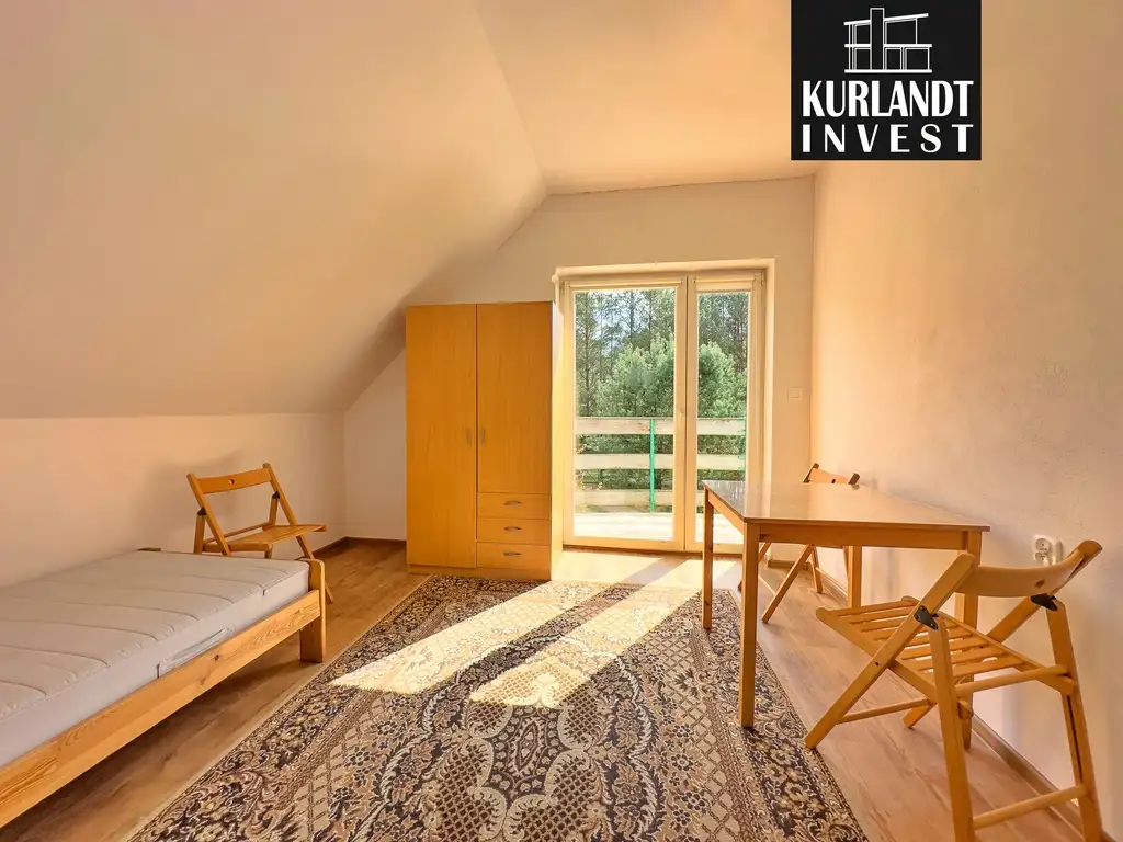 piętro: trzy sypialnie (w tym dwie z balkonem i widokiem na jezioro), dwie łazienki,