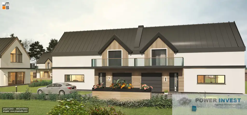 Każdy z domów ma powierzchnię 103 m² + 29,34 m² dodatkowej powierzchni pomocniczej i składa się z:
