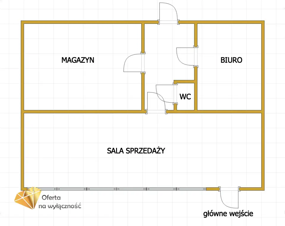 - magazyn, biuro oraz wc o łącznej powierzchni 60 m²