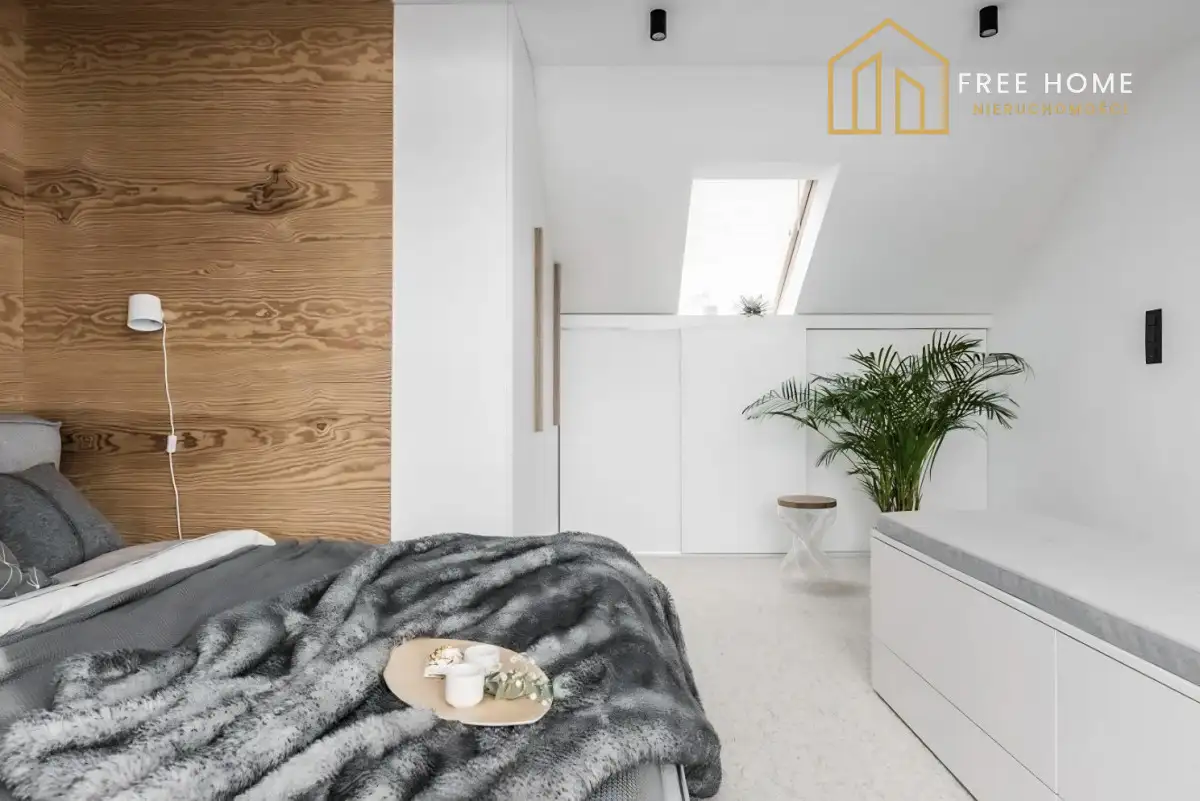Przestrzeń z ogromnym potencjałemZgodnie z projektem architektonicznym zaplanowano przestronny salon o powierzchni 44,81 m², dużą sypialnię o powierzchni 20,89 m², funkcjonalną kuchnię o powierzchni 7,90 m² oraz komfortową łazienkę o powierzchni 8,90 m². Dodatkowym atutem jest możliwość wykorzystania dużej wysokości w szczycie więźby dachowej do stworzenia antresoli lub dodatkowej przestrzeni użytkowej.