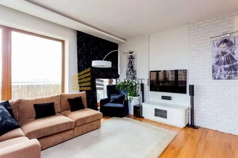 Mieszkanie zostało zaprojektowane przez uznanych architektów, co widać w każdym detalu. Wnętrze jest w pełni wyposażone w wysokiej klasy sprzęt oraz meble, z których większość wykonana jest na zamówienie, co nadaje mu indywidualnego charakteru. Dzięki zastosowaniu najlepszych materiałów, takich jak trawertyn w łazience, poczujesz luksus na każdym kroku.