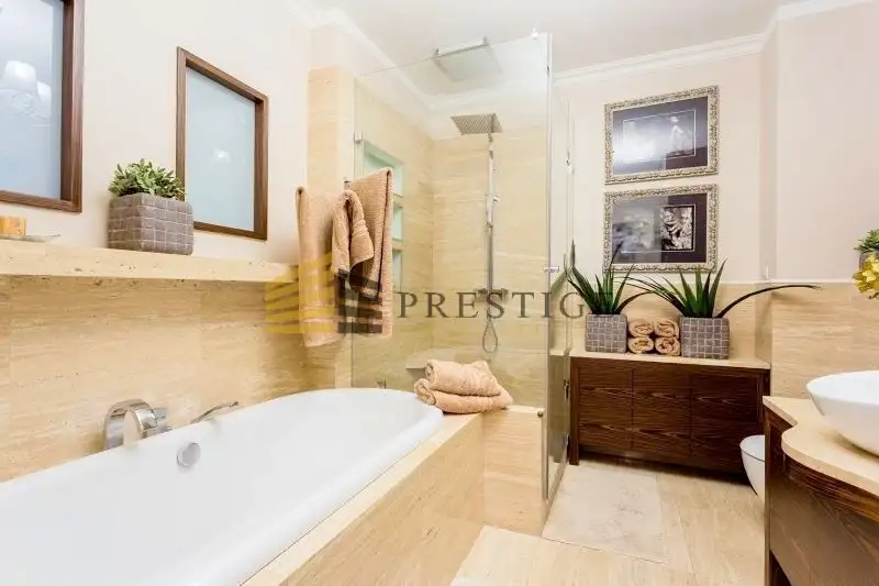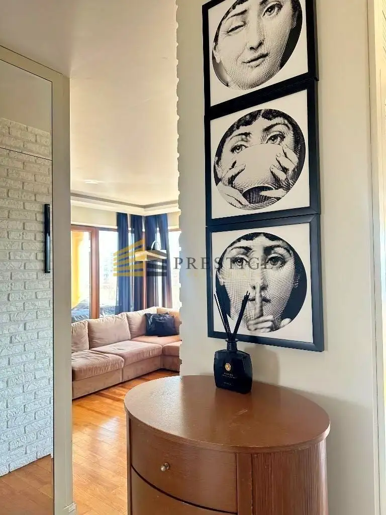 Designed by renowned architects, the apartment showcases meticulous attention to detail in every aspect. The interior is fully equipped with high-quality appliances and furniture, most of which is custom-made, giving it a distinctive character. You'll experience luxury at every turn, thanks to the use of premium materials like travertine in the bathroom.