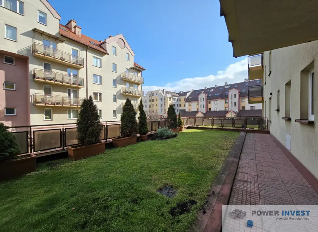 Bezpośrednie wyjścia z obu pokoi prowadzą na przestronny, zielony taras o powierzchni ok. 65 m². To rzadko spotykana przestrzeń – idealna na ogród, strefę wypoczynku lub aktywności na świeżym powietrzu. Zapewnia pełną prywatność i komfort, a jednocześnie naturalne przedłużenie powierzchni mieszkalnej.