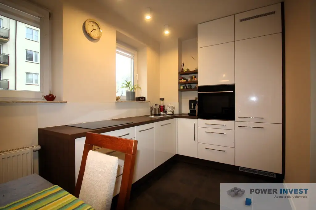 - Kuchnia – 9,36 m² – oddzielna, wyposażona w wysokiej jakości zabudowę na wymiar, oferującą dużą ilość miejsca do przechowywania oraz część jadalną.