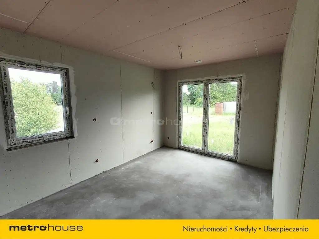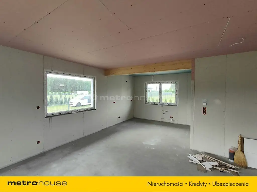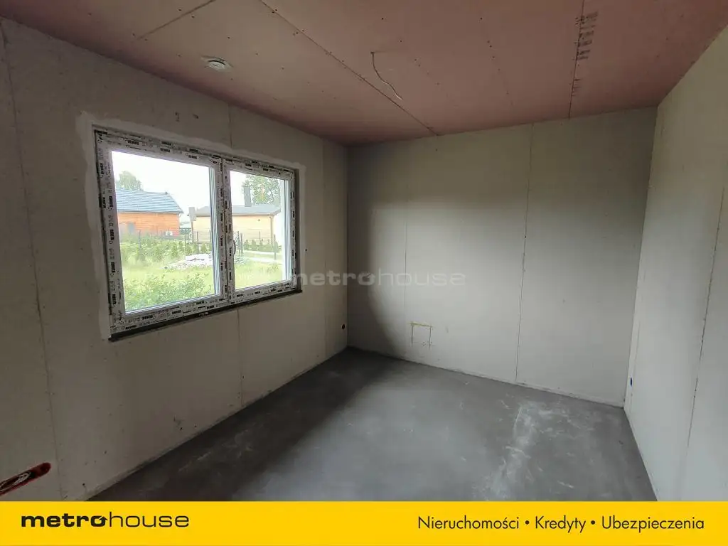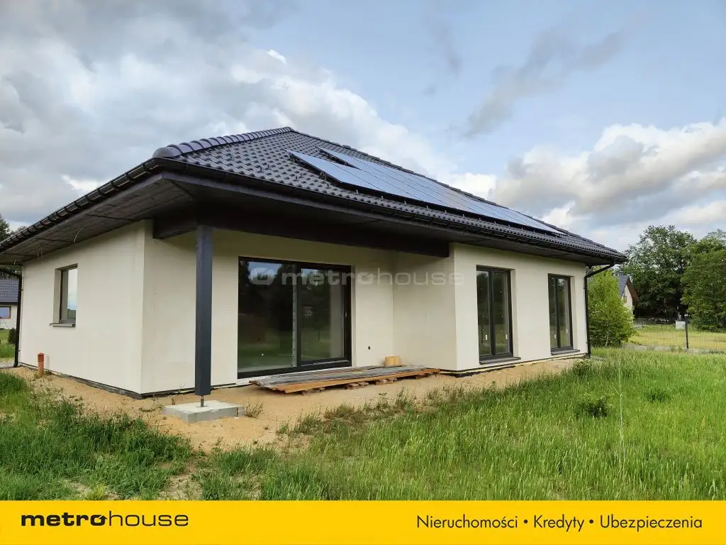 Dom o powierzchni 104m² z nieużytkowym poddaszem, w stanie deweloperskim. Do zrobienia pozostała jedynie oczyszczalnia ścieków. Budynek wybudowany w technologii szkieletowej, ocieplony wełną mineralną, na dachu dachówka betonowa. Dom ogrzewany nowoczesnym piecem elektrycznym połączonym z instalacją fotowoltaiczną, woda z wodociągu gminnego.