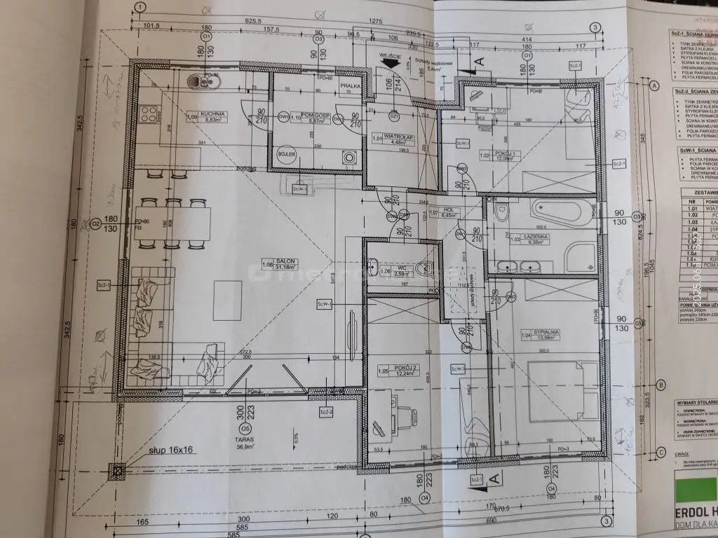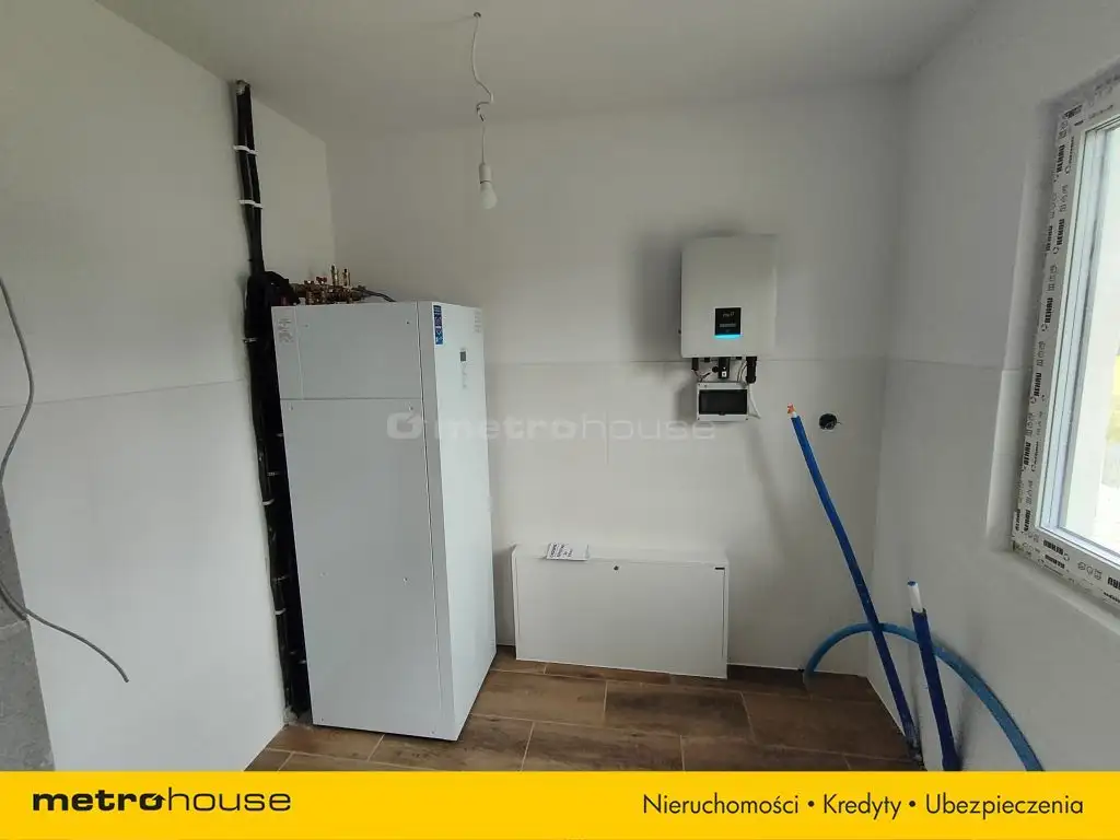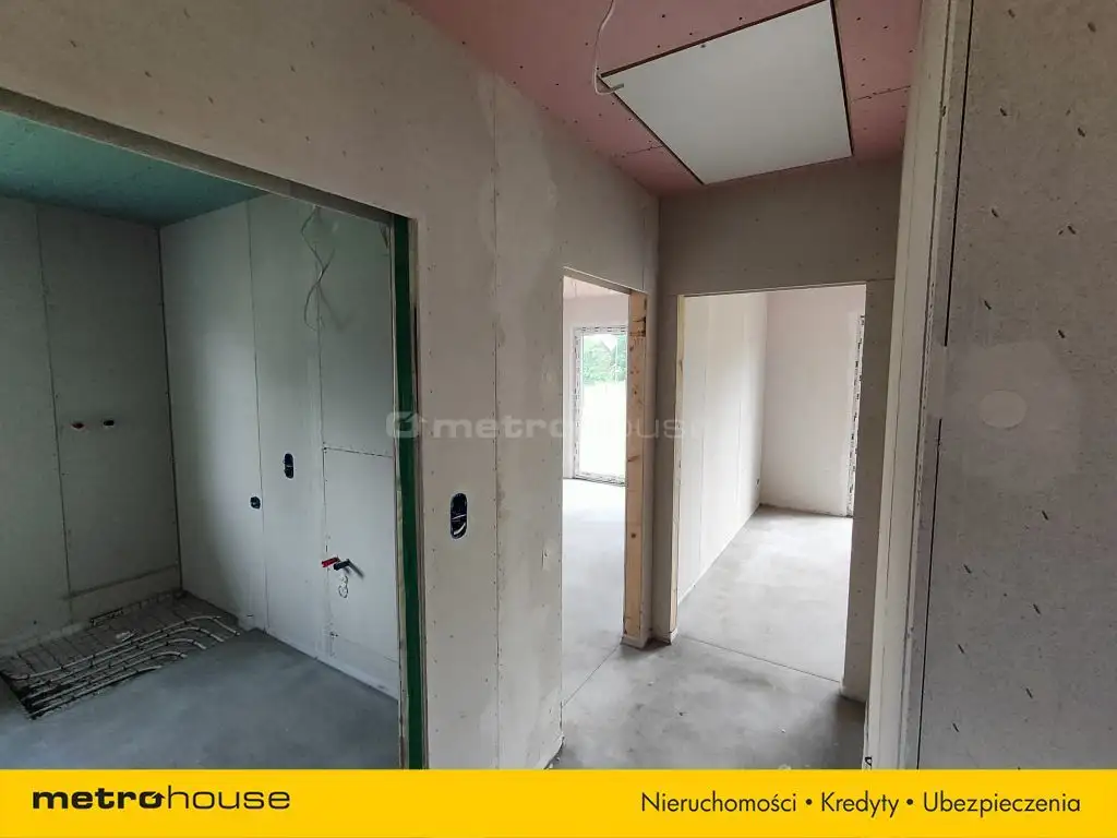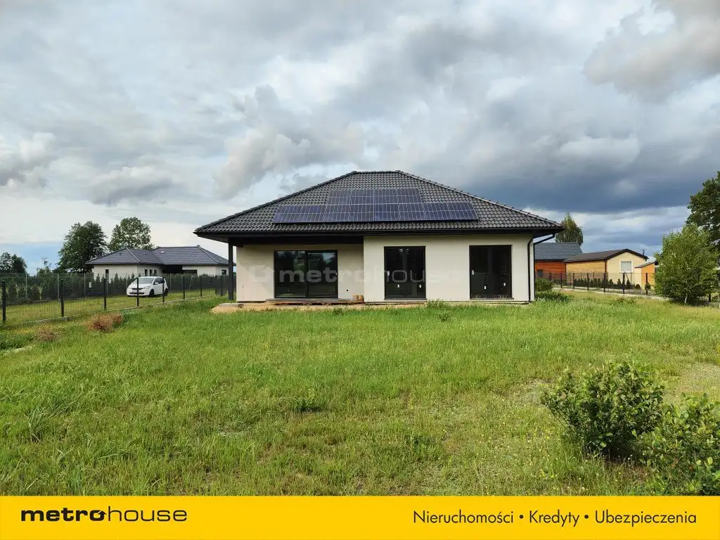 Dom o powierzchni 104m² z nieużytkowym poddaszem, w stanie deweloperskim. Do zrobienia pozostała jedynie oczyszczalnia ścieków. Budynek wybudowany w technologii szkieletowej, ocieplony wełną mineralną, na dachu dachówka betonowa. Dom ogrzewany nowoczesnym piecem elektrycznym połączonym z instalacją fotowoltaiczną, woda z wodociągu gminnego.
