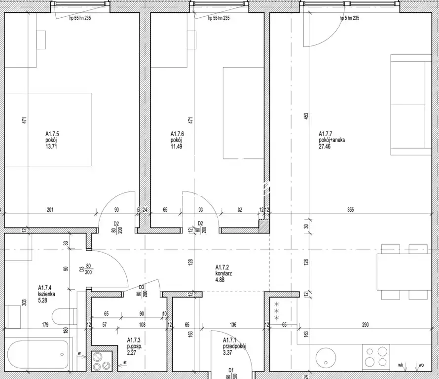 - Przedpokój z miejscem na dużą szafę na kurtki oraz inne części garderoby.