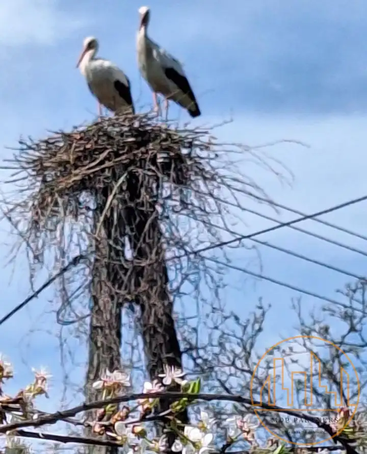 gniazdo bocianie (na słupie elektrycznym, aktualnie użytkowane),
