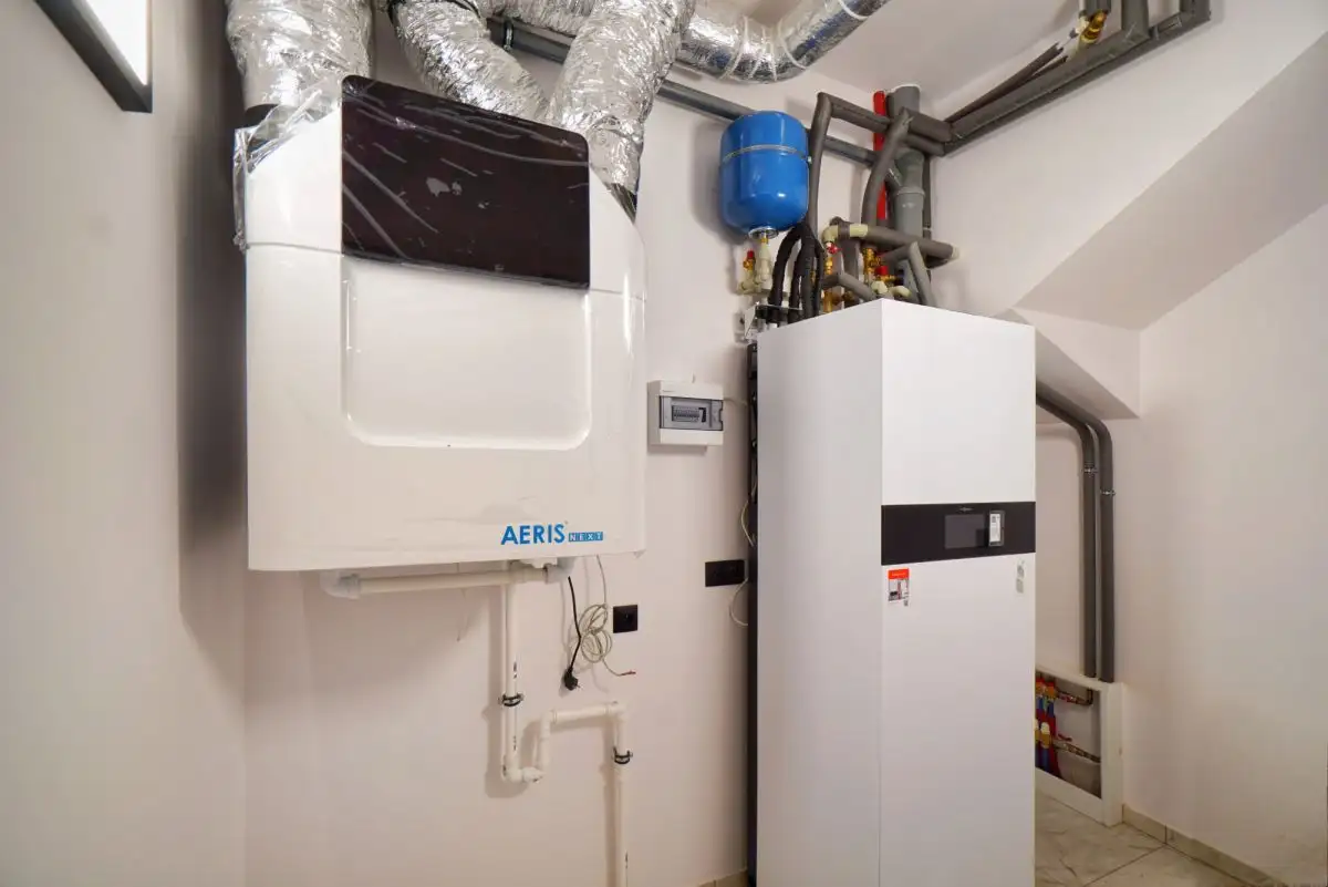 Dom ma w cenie własną pompę ciepła firmy Viessmann oraz instalację rekuperacji (stała wentylacja z odzyskiem ciepła), co sprawi, że temperatura w budynku zawsze będzie optymalna, a powietrze czyste. Jest to rozwiązanie idealne dla alergików. Poszczególne pomieszczenia na piętrze oraz w garażu ogrzewane przy pomocy ogrzewania podłogowego. W budynku przygotowano przyłącza pod fotowoltaikę, co da w przyszłości możliwość płacenia niższych podatków od nieruchomości.