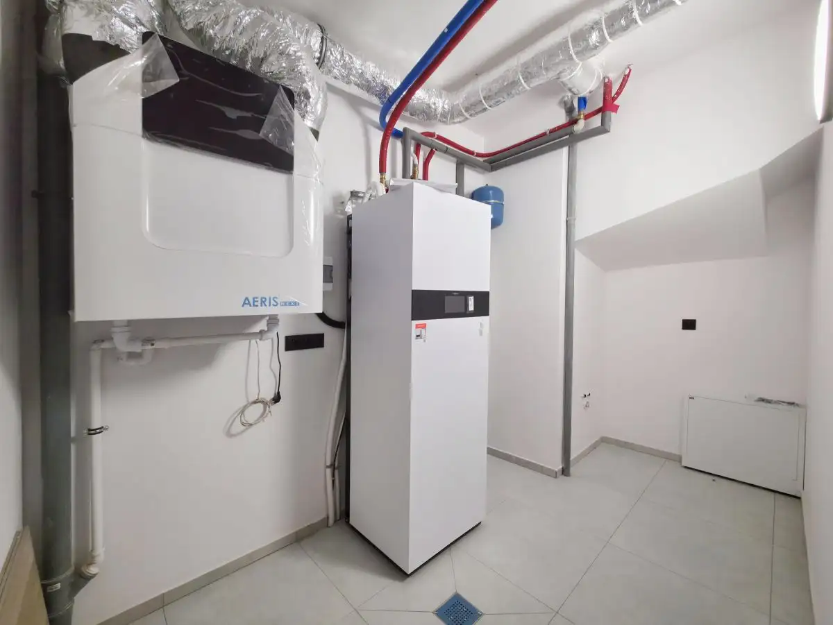 House has its own Viessmann heat pump included in the price, as well as a recuperation system (permanent ventilation with heat recovery), which will ensure that the temperature in the building will always be optimal and the air clean. This is ideal for people with allergies. Individual rooms on the first floor and in the garage are heated by underfloor heating. Connections for photovoltaics have been prepared in the building, which will give the possibility of paying lower property taxes in the future.